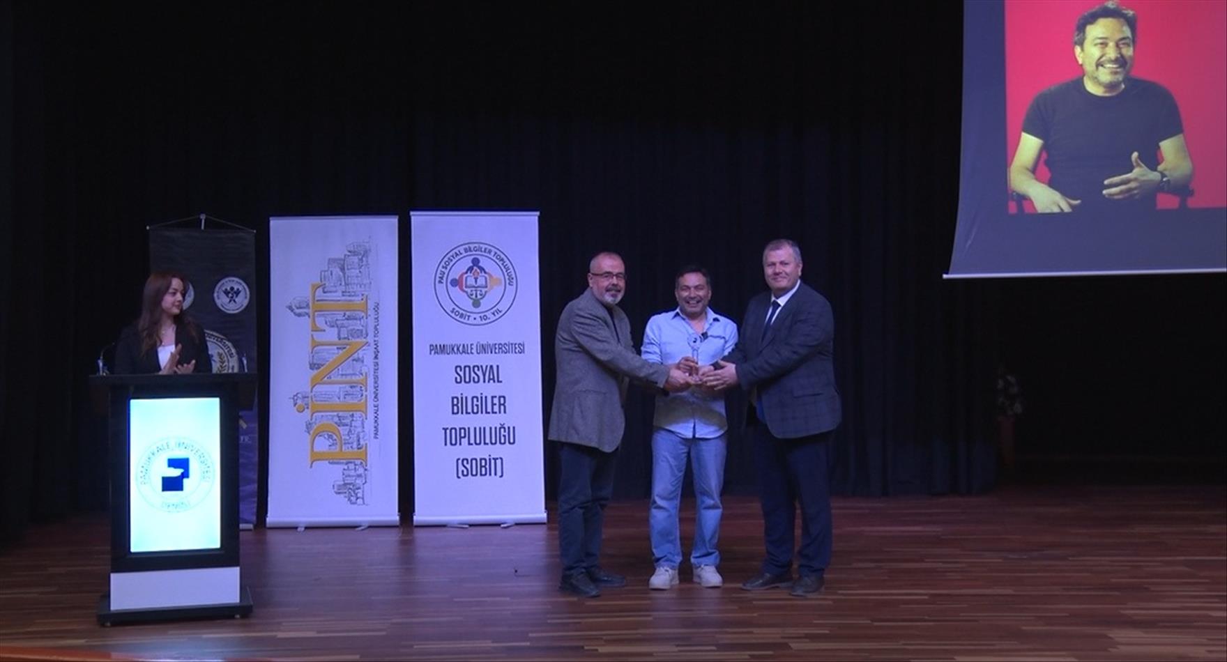 Söyleşinin sonunda günün anısına Ahmet Şerif İzgören’e hediye takdimini Pamukkale Üniversitesi Genel Sekreteri Fatih Işık yaptı. Toplu fotoğraf çekiminin ardından etkinlik sona erdi.