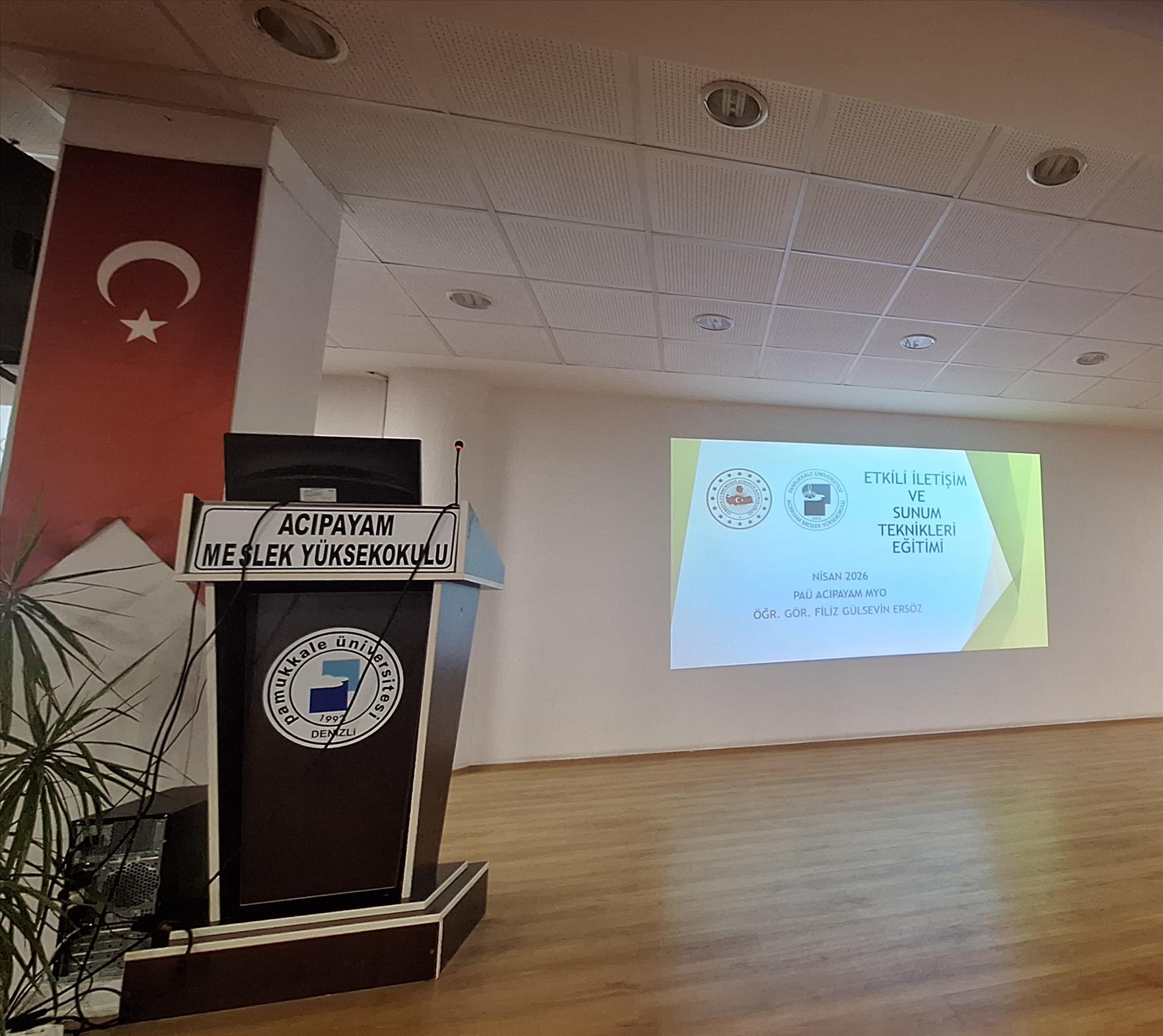 Acıpayam Kaymakamlığı ve Yüksekokulumuz iş birliği ile planlanan Etkili İletişim ve Sunum Becerileri Eğitimi’nin ilk oturumu 6 Nisan tarihinde Acıpayam MYO Konferans Salonu’nda Acıpayam İlçe Müftülüğü personelinin katılımıyla gerçekleşti.