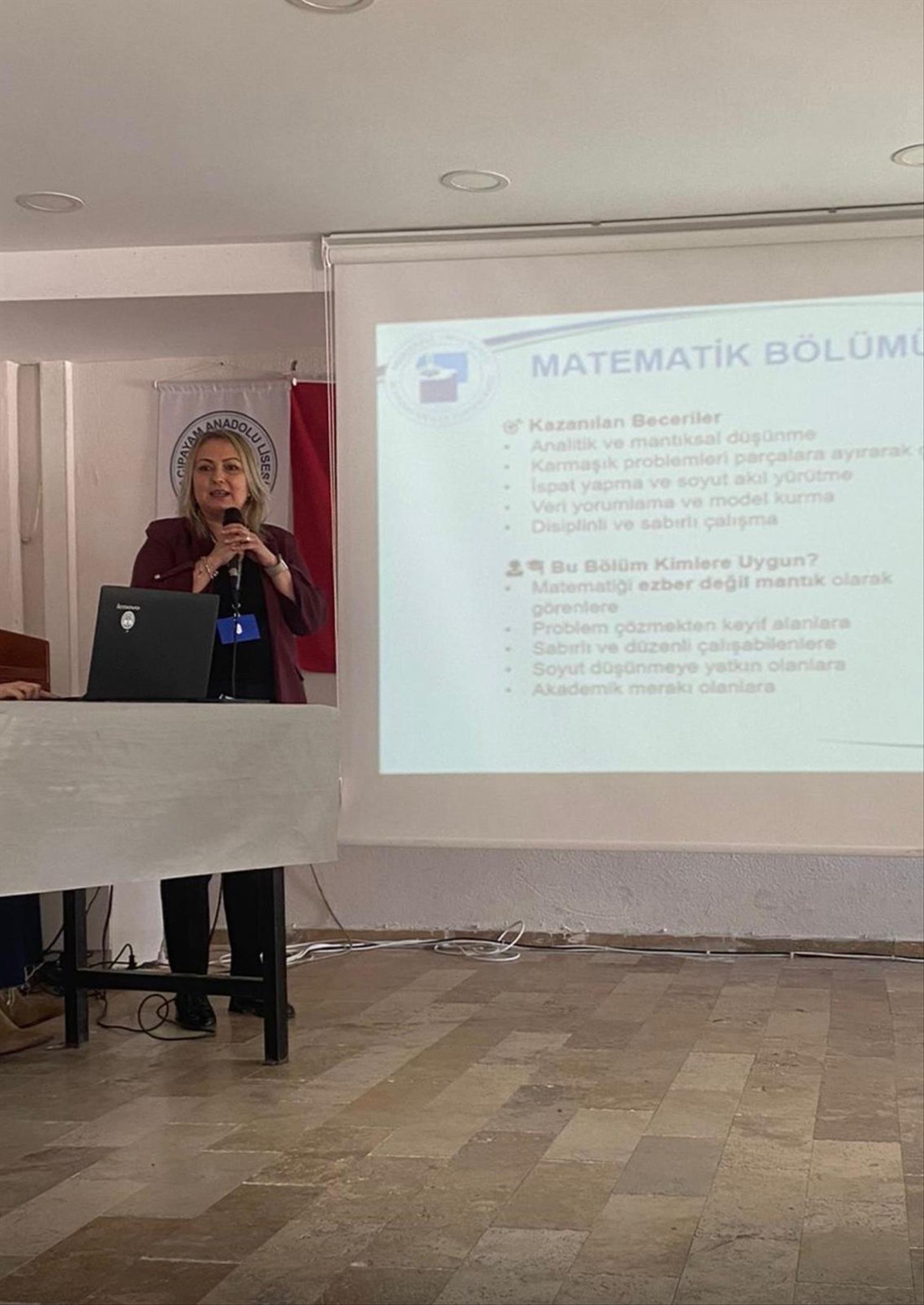 Acıpayam MYO akademisyenlerinden Büro Hizmetleri ve Sekreterlik Bölüm Başkanı Öğr. Gör. Dr. Simge Şimşek mezunu olduğu Lise'de matematik alanında bilgi vermek için öğrencilerle buluştu. Çağrı Merkezi Hizmetleri programından Öğr. Gör. Merve Gündoğan Oğuz da liselilere kamu yönetimi hakkında bilgi verdi. Öğr. Gör. Esengül Katırcı Ünkaya da İngilizce öğretmenliği, İngiliz Dili ve Edebiyatı alanlarıyla ilgili bir konuşma yaptı.