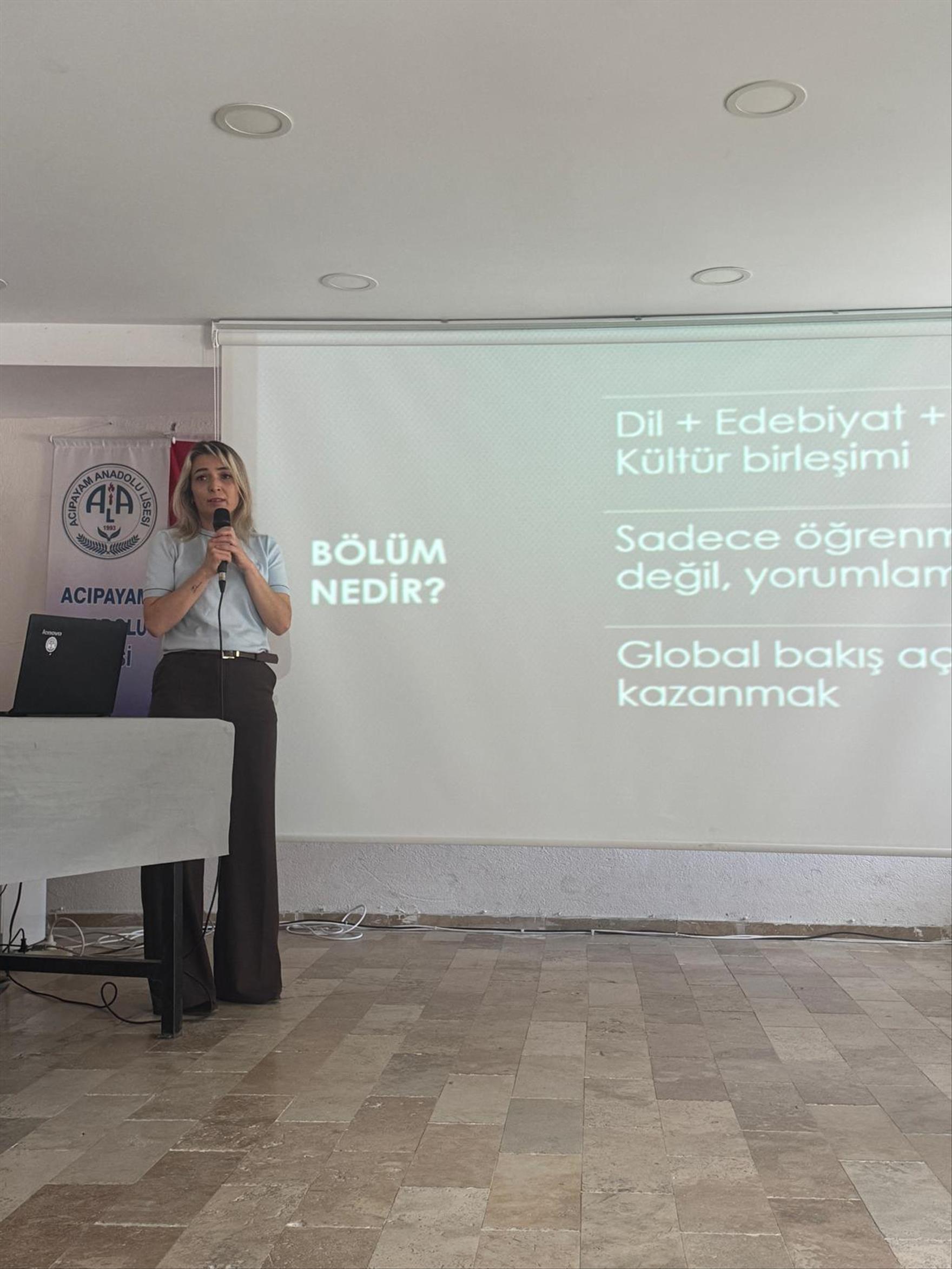 Pamukkale Üniversitesi (PAÜ) Acıpayam Meslek Yüksekokulu (Acıpayam MYO) Meslek Tanıtım Günleri kapsamında 24 Nisan tarihlerinde gerçekleşen lise buluşmalarından biri de Acıpayam Anadolu Lisesi'nde gerçekleşti.