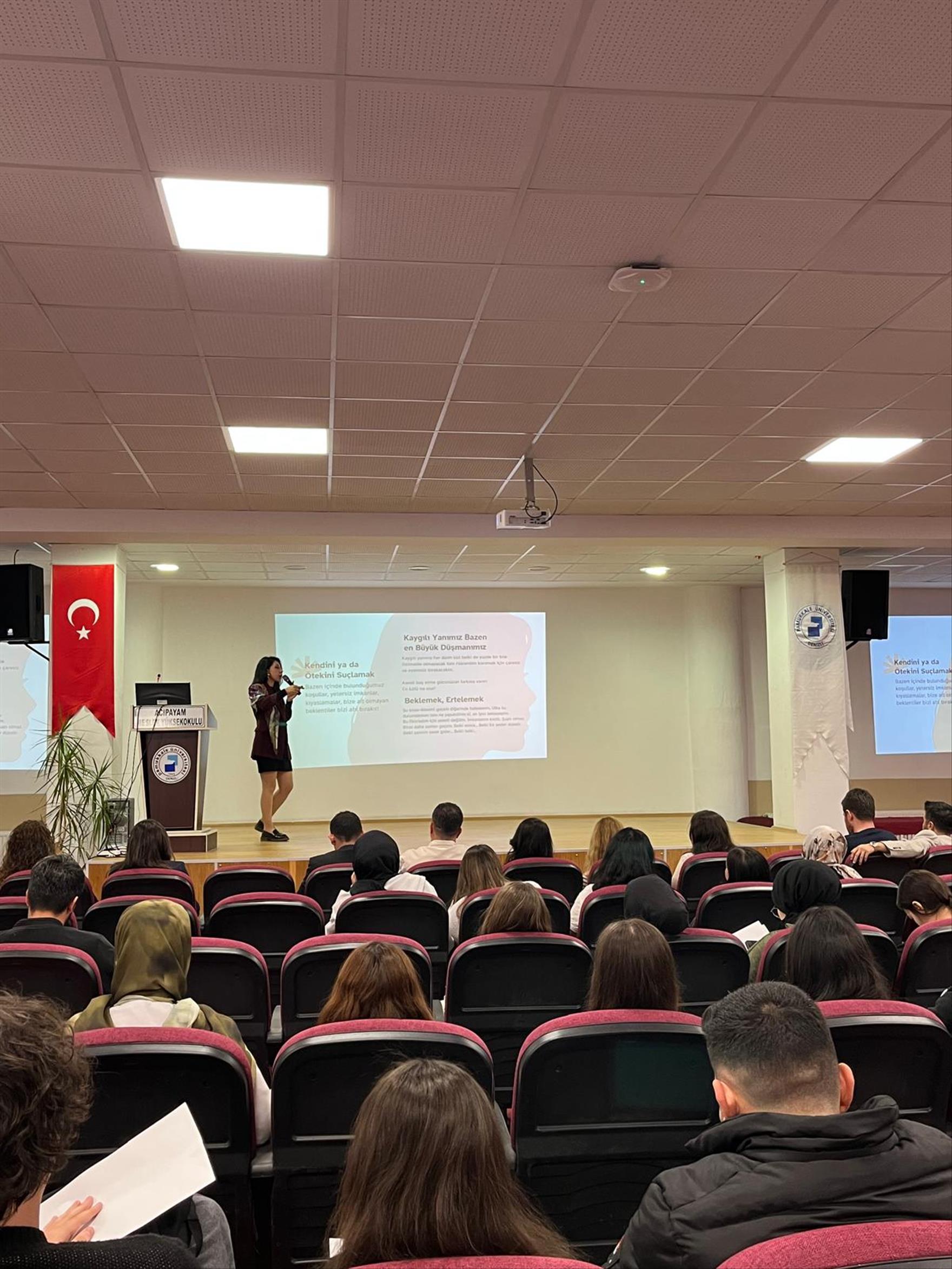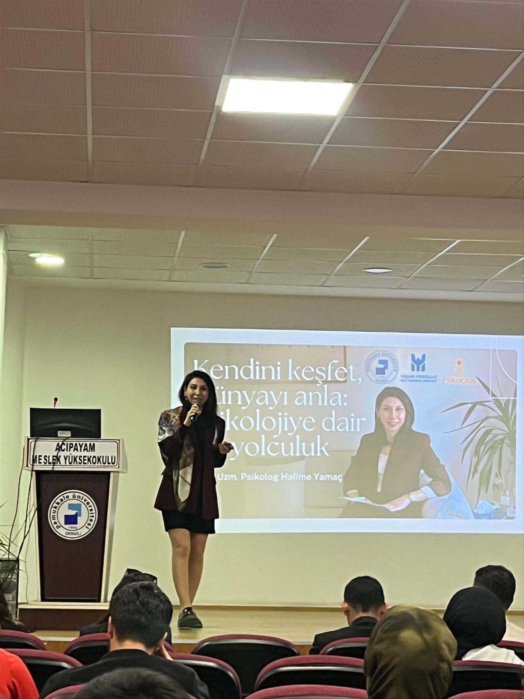 Pamukkale Üniversitesi (PAÜ) Acıpayam Meslek Yüksekokulu (Acıpayam MYO) VI. Bilim, Kültür ve Kariyer Etkinliklerinin son gününde Uzm. Psikolog Halime Yamaç’ı ağırladı.