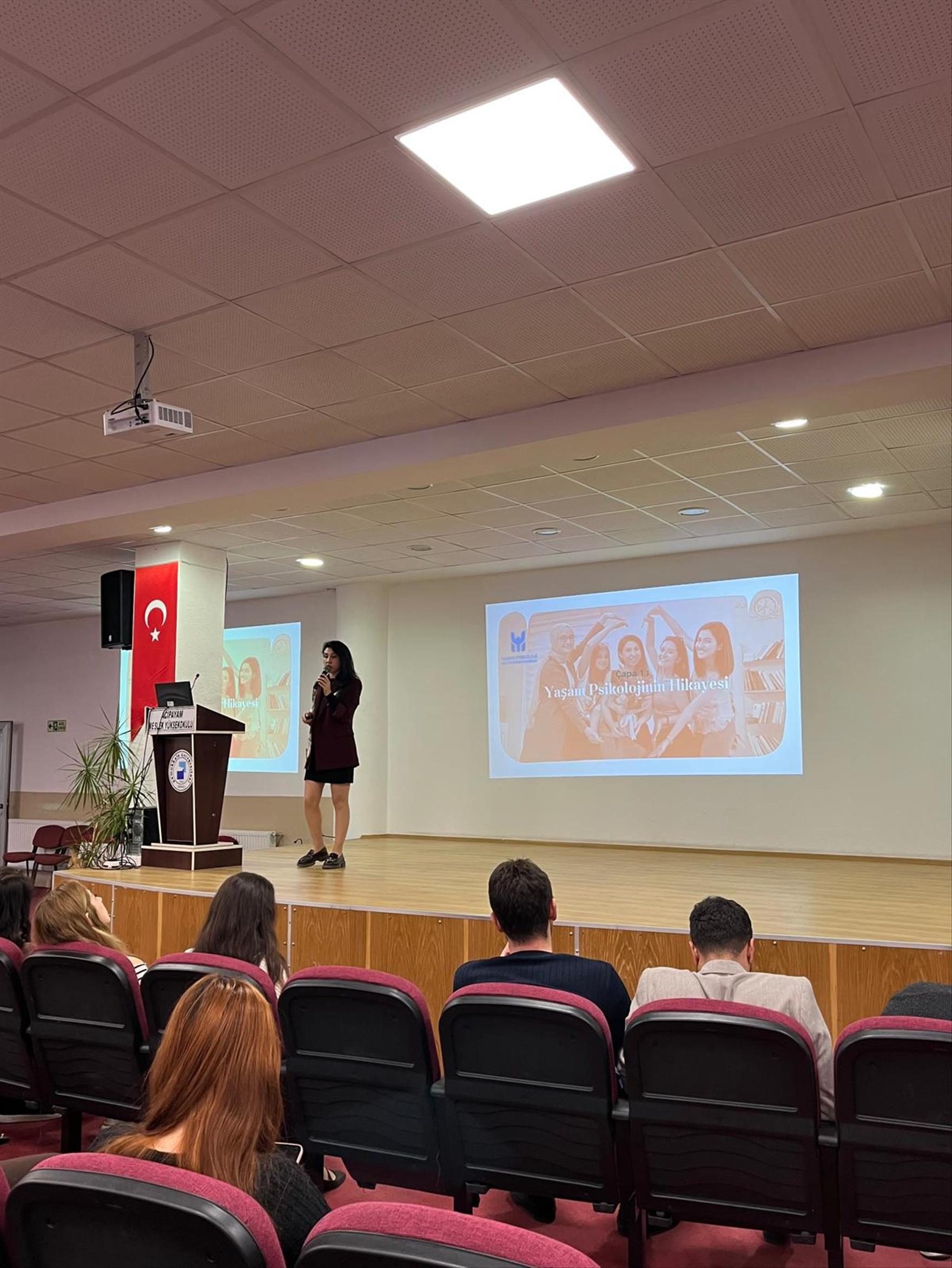 Kendini Keşfet, Dünyayı Anla Psikolojiye Dair Bir Yolculuk başlıklı bir sunum gerçekleştiren Psikolog, konuşmasına kendi kariyer öyküsünü anlatarak başladı. Psikolojiye dair bazı kavramları da ele alan Psikolog Yamaç, öğrencilere bir uygulama da yaptırdı. Etkinlik, Acıpayam MYO Müdürü Prof. Dr. Ali Kurt’un konuşmacıya teşekkür belgesi takdim etmesiyle son buldu.