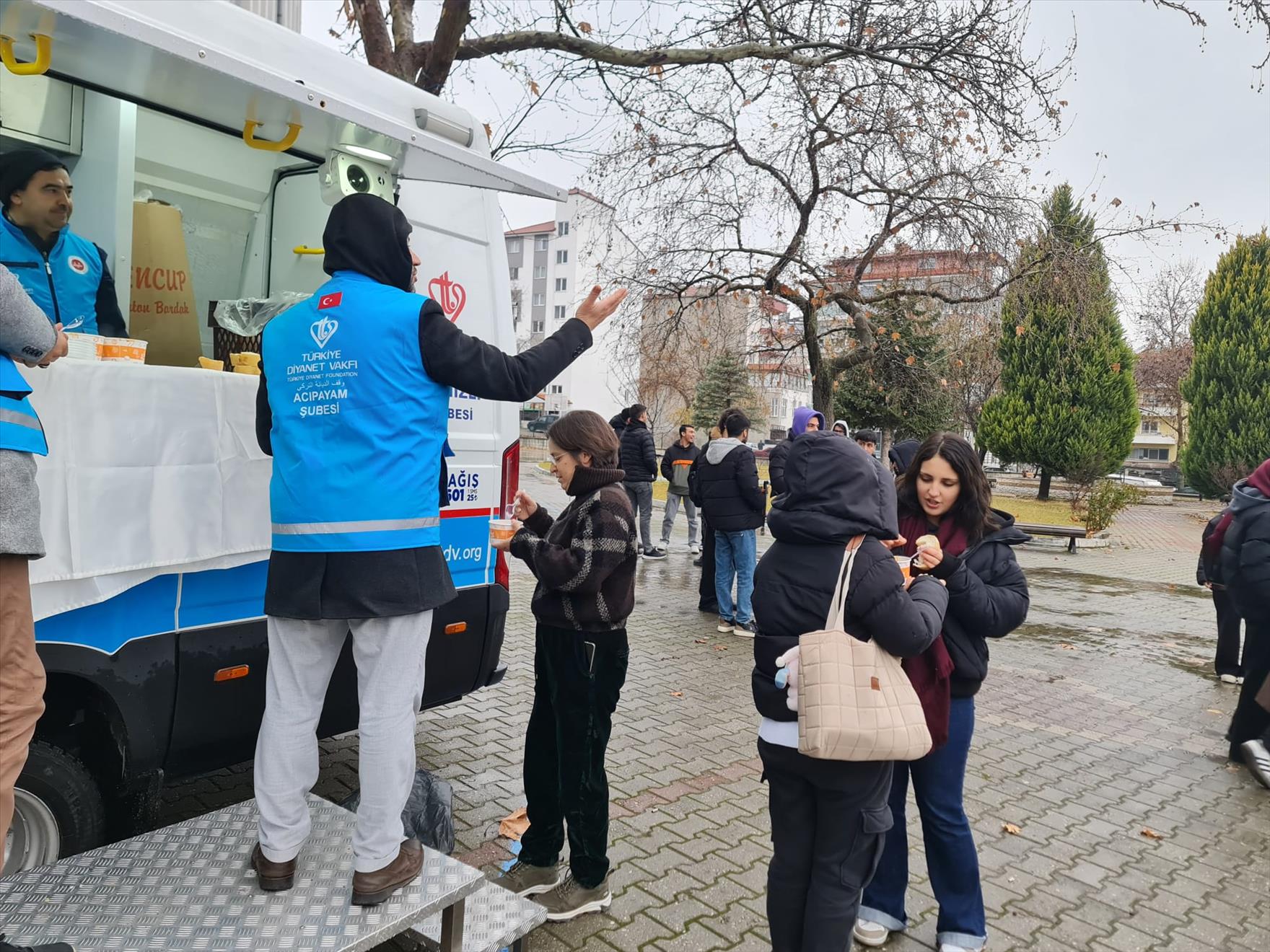 Acıpayam İlçe Müftülüğü 31 Aralık 2025 tarihinde Acıpayam MYO bahçesinde sabahın erken saatlerinden itibaren çorba ikramında bulundu.