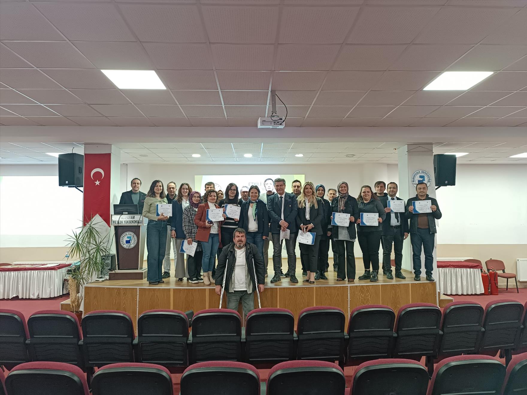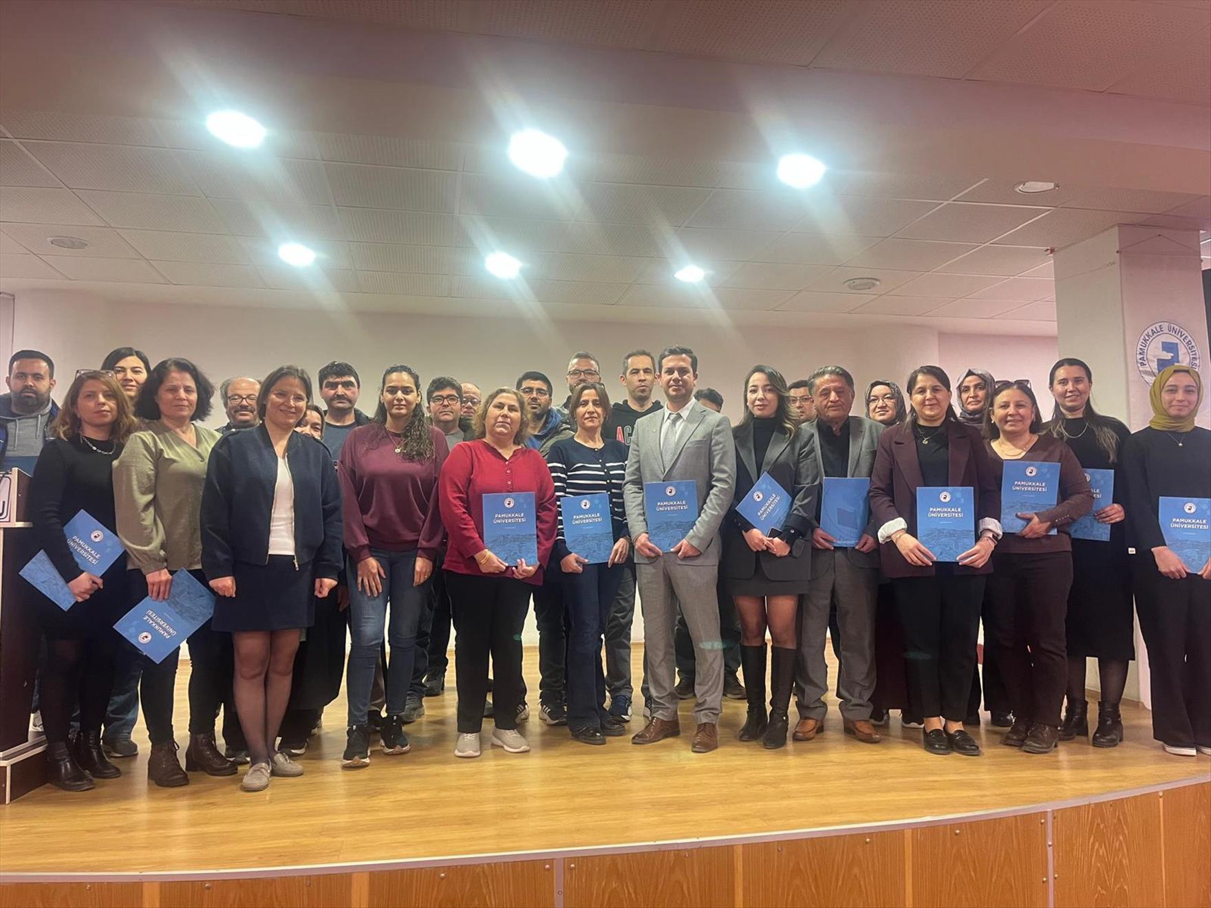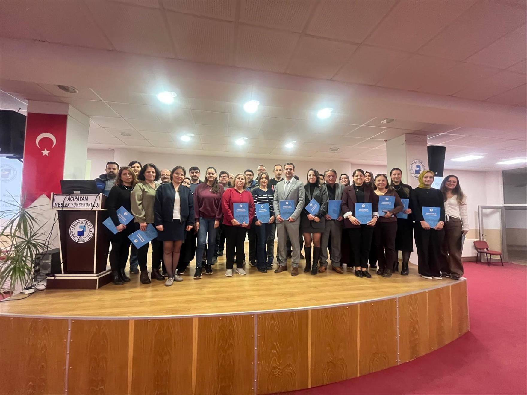 Farklı kurum ve kuruluş çalışanlarının katılımıyla devam eden eğitimlerin son oturumu 10 Nisan tarihinde Acıpayam İlçe Sağlık Müdürlüğü, Acıpayam ilçe Tarım ve Orman Müdürlüğü ve Acıpayam İlçe Sosyal Hizmet Merkezi Müdürlüğü personelinin katılımıyla gerçekleşti. İlgi ve beğeniyle karşılanan eğitim sonunda eğitmen Öğr. Gör. Filiz Gülsevin Ersöz katılım belgelerini takdim etti.