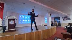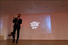 Emre Verim, Yüksekokul akademik, idari personeline ve öğrencilerine 16 EkimPerşembe günü Acıpayam MYO Konferans Salonu’nda Milli Teknoloji Hamlesi konulu bir konferans verdi. Verim, Türkiye’nin “Yüksek Teknoloji ve İnovasyon, Dijital Dönüşüm ve Sanayi Hamlesi, Girişimcilik, Beşerî Sermaye ve Altyapı bileşenlerinden oluşan Milli Teknoloji Hamlesine” öncülük eden bir oluşum olarak T3 Vakfı’nın projeleri, faaliyetleri, eğitim programları, bursları vb. konularda bilgi verdi. T3 Vakfı’nın teknoloji odaklı faaliyet yürüten tek vakıf olduğunun altını çizen Emre Verim, bu oluşumun fikri ve uygulamalı yarışmalarıyla, Teknofest gibi marka olmuş etkinleriyle, eğitimi destekleyen burslarıyla, geliştirdikleri teknolojilerle fark yarattığını da vurguladı. T3 Vakfı’nın lise ve üniversitelerde kurulan yarışma takımlarını desteklediğini, bu takımların amatör bir öğrenci topluluğundan nasıl Türksat’a roket üretir hale gelen uzman ekiplere dönüştüğünün de öyküsünü anlattı. Ön lisans programı okuyan gençlerin bu oluşum içinde neler yapabileceklerini ifade etti.