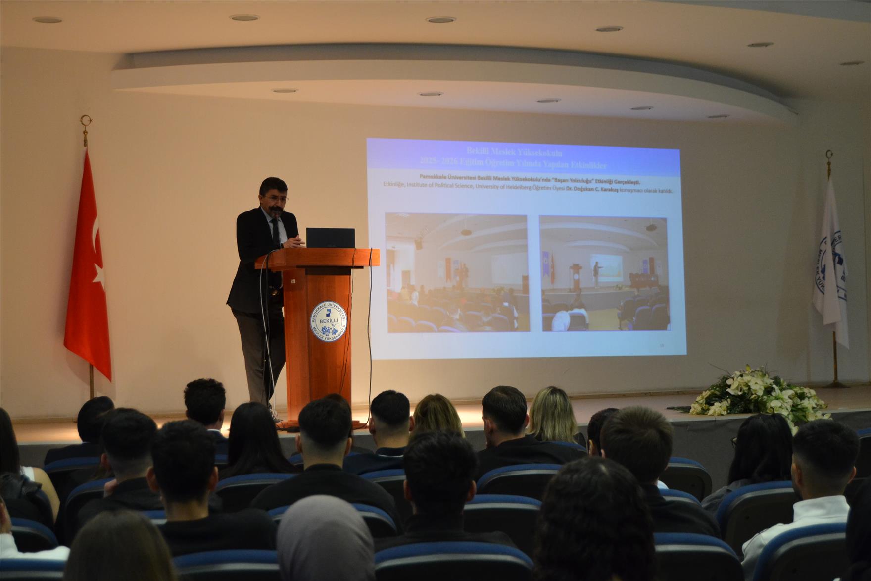 Bekilli Meslek Yüksekokulu Müdürü Doç. Dr. İbrahim Gökburun ise konuşmasında Bekilli Meslek Yüksekokulu’nun yürüttüğü eğitim-öğretim faaliyetleri, akademik çalışmalar ve gelecek hedefleri hakkında bilgi vererek, kurumun gelişimine katkı sunan akademik ve idari personelin özverili çalışmalarını özellikle vurguladı ve tüm personele teşekkür etti.