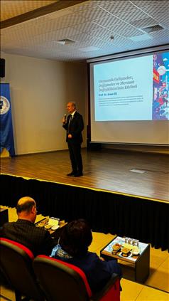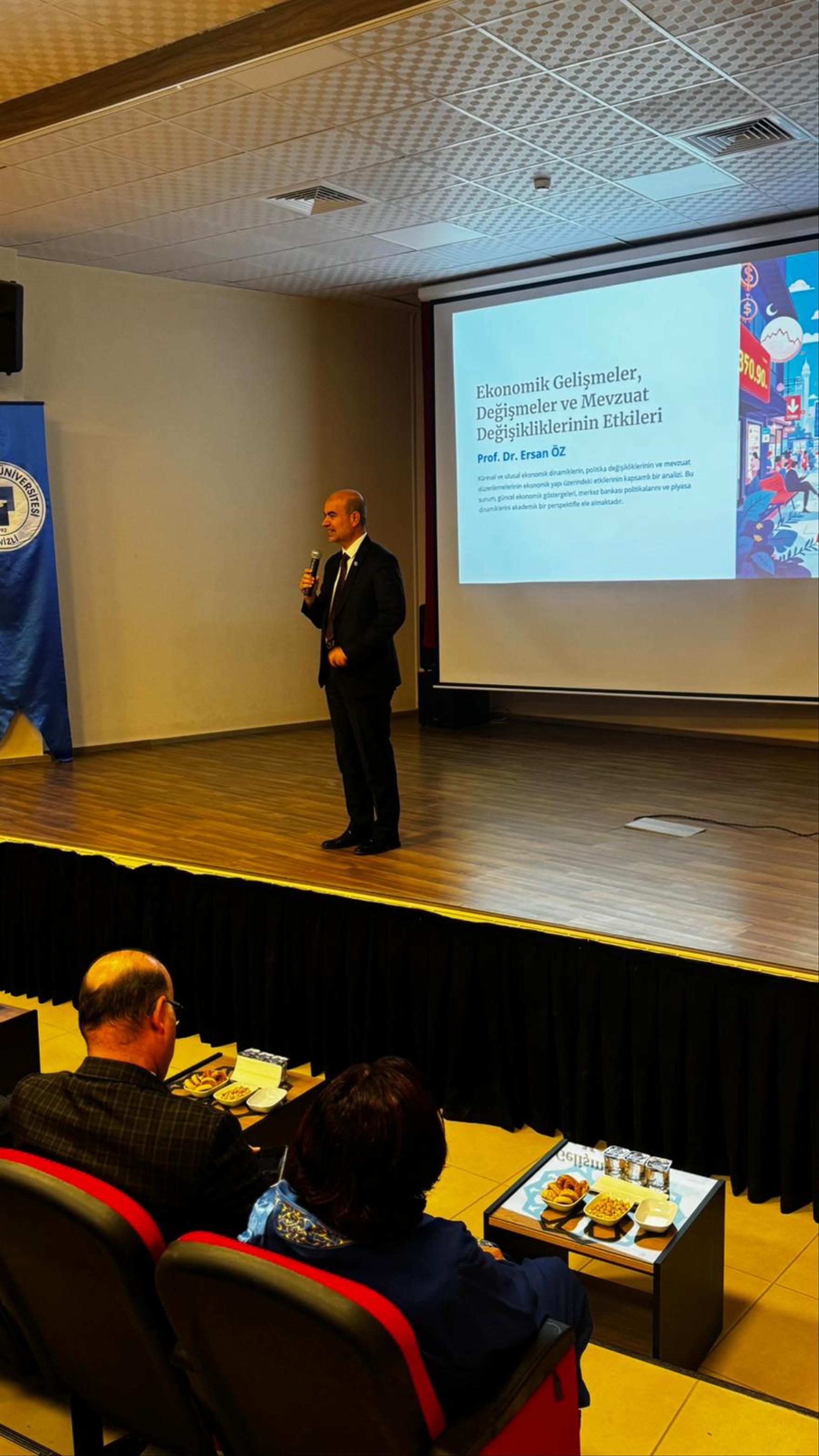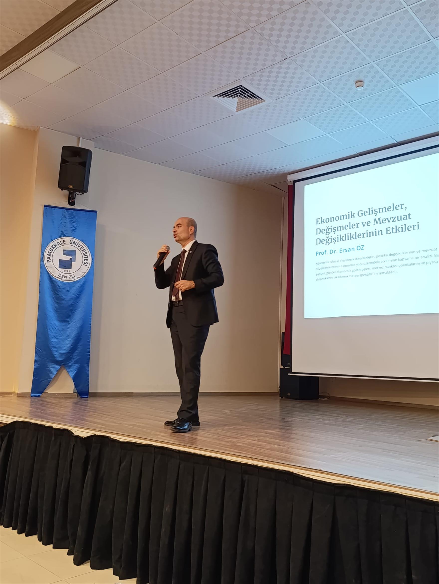 Açılış dersini gerçekleştiren PAÜ İktisadi ve İdari Bilimler Fakültesi (İİBF) öğretim üyesi ve Rektör Yardımcısı Prof. Dr. Ersan Öz; “Gazze’nin Çığlıkları Arasında: Dünyada ve Türkiye’de Mali Gelişmeler” başlıklı konuşmasında katılımcılara Gazze’deki insanların durumlarına dikkat çekerek duyarlı olunması ve kayıtsız kalınmaması gerektiğini söyledi. Rektör Yardımcı Prof. Dr. Öz konuşmasında ayrıca küresel olarak mali gelişmeler ile ilgili bir sunum da yaptı.