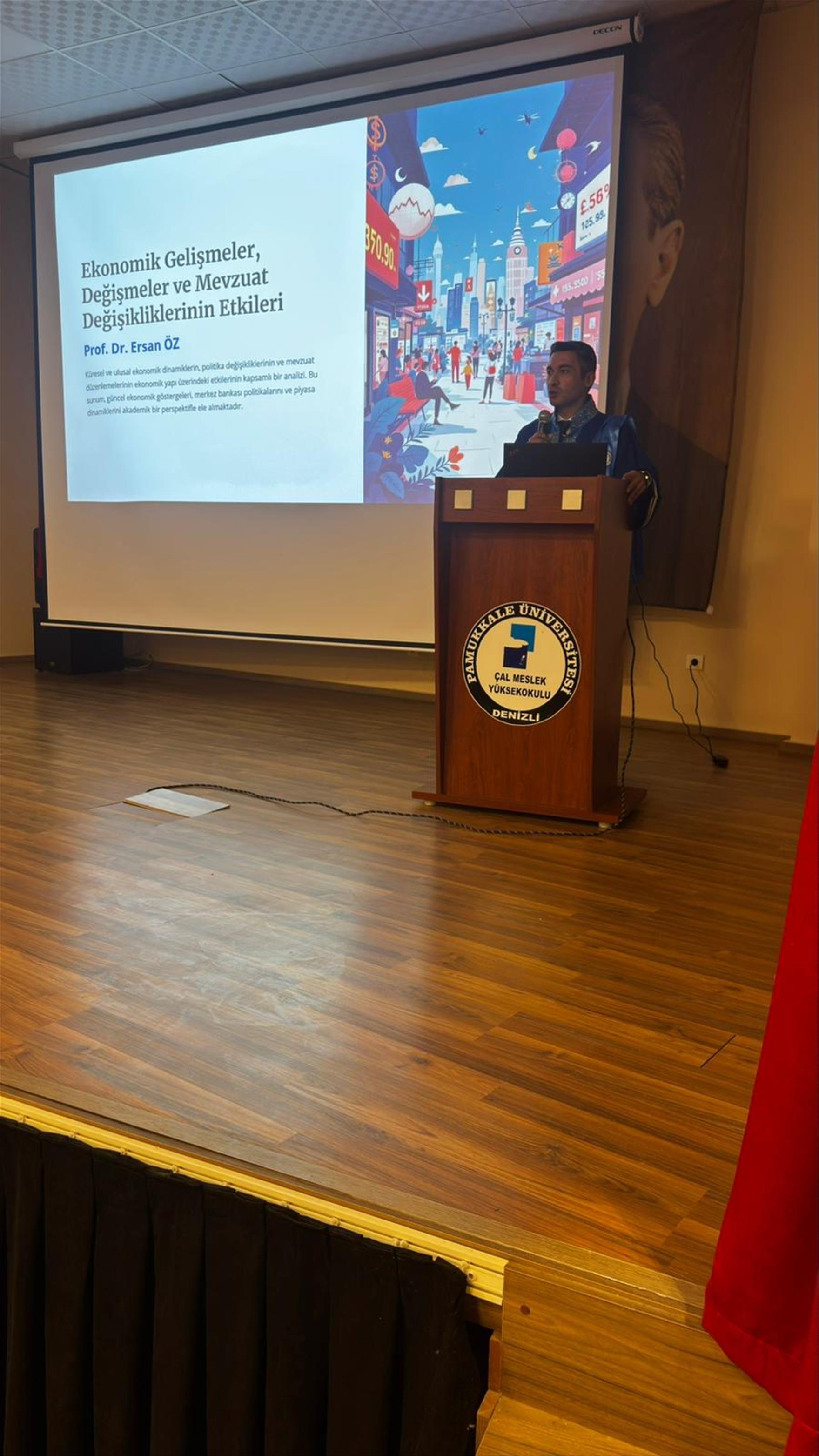 Pamukkale Üniversitesi (PAÜ) Çal Meslek Yüksekokulu’nda (MYO) 2025–2026 Eğitim-Öğretim Yılı Akademik Açılış Töreni gerçekleştirildi. Programda, Rektör Yardımcısı Prof. Dr. Ersan Öz “Gazze’nin Çığlıkları Arasında: Dünyada ve Türkiye’de Mali Gelişmeler” başlıklı bir açılış dersi gerçekleştirdi.
