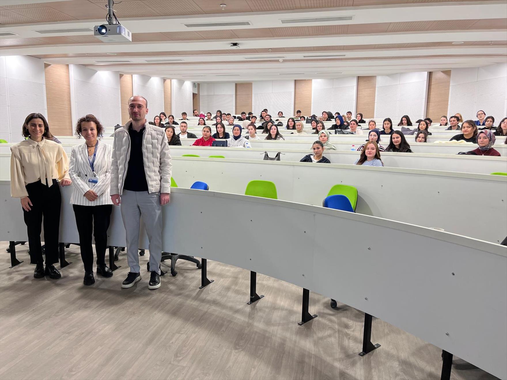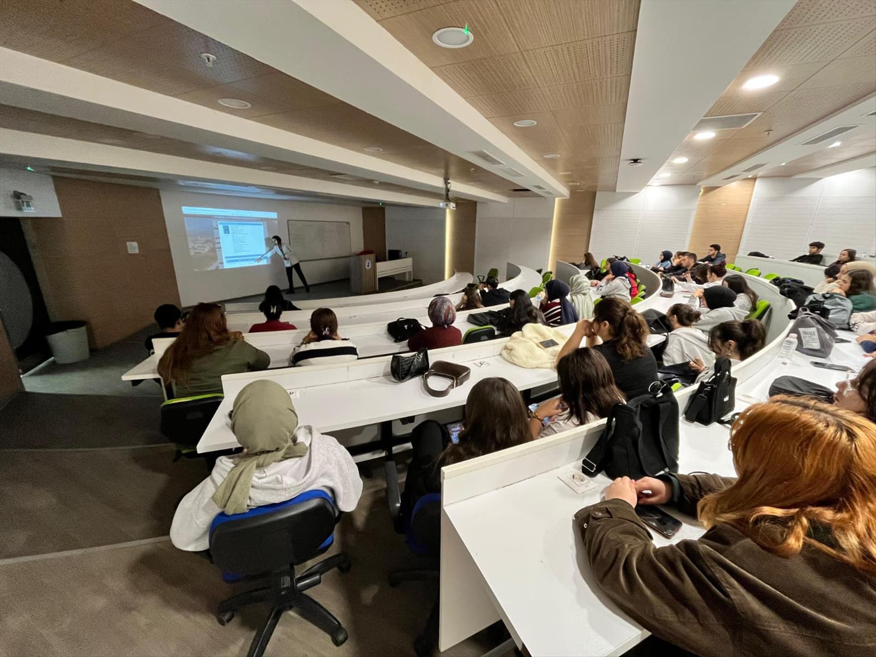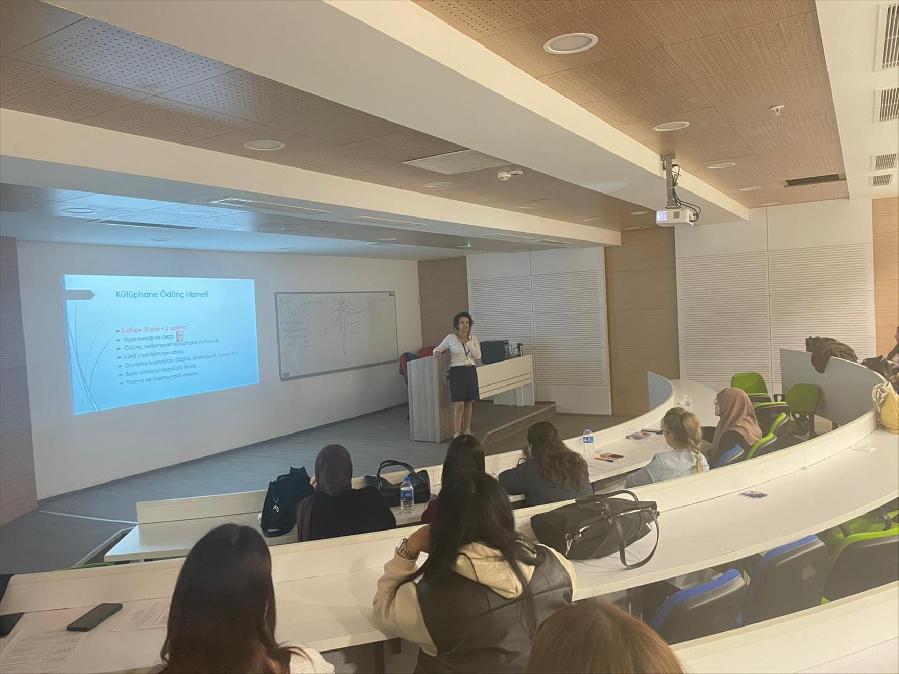 Öğr. Gör. Ümran Kandemir tarafından verilen eğitimde, öğrencilerin üniversite kütüphanesinden en üst düzeyde yararlanabilmeleri için pratik bilgiler sunuldu. Kütüphane otomasyon sistemi, çevrim içi katalog kullanımı, akademik veri tabanlarına erişim ve elektronik kaynaklardan etkin yararlanma yolları örneklerle aktarıldı. Eğitimin sonunda gerçekleştirilen interaktif bölümde öğrenciler, merak ettikleri konularda doğrudan sorular sorarak birebir yanıt alma fırsatı buldular. Bu etkileşimli ortam, yalnızca kütüphane hizmetlerinin tanıtımını değil, aynı zamanda öğrencilerin araştırma becerilerinin gelişimine de katkı sundu.