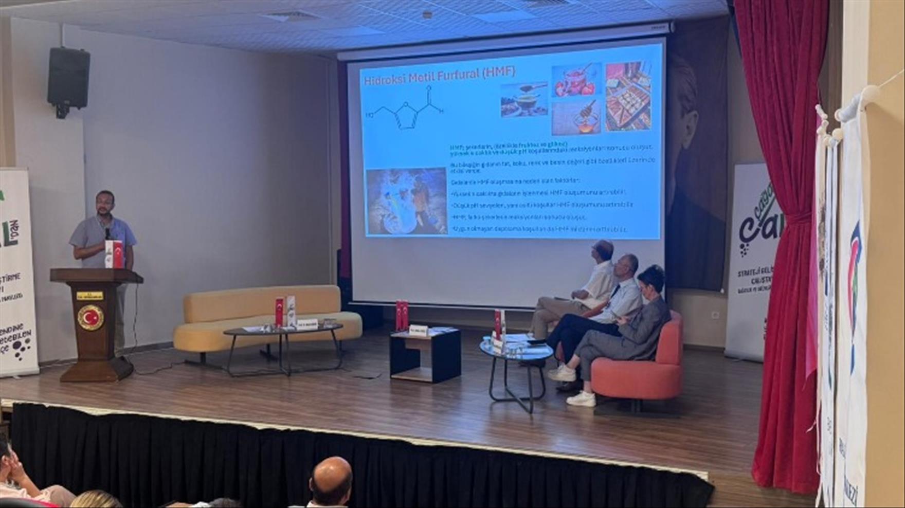 Prof. Dr. Hakan Karaca from PAU Department of Food Engineering, in his presentation titled “Points and Risks to Consider in Molasses Production and Grape Drying,” highlighted health-related issues. He provided information about the potential formation of HMF (Hydroxymethylfurfural) due to high temperatures in molasses production, ochratoxin formation in dried grapes under unhealthy conditions, and residue problems in grapes and leaves.