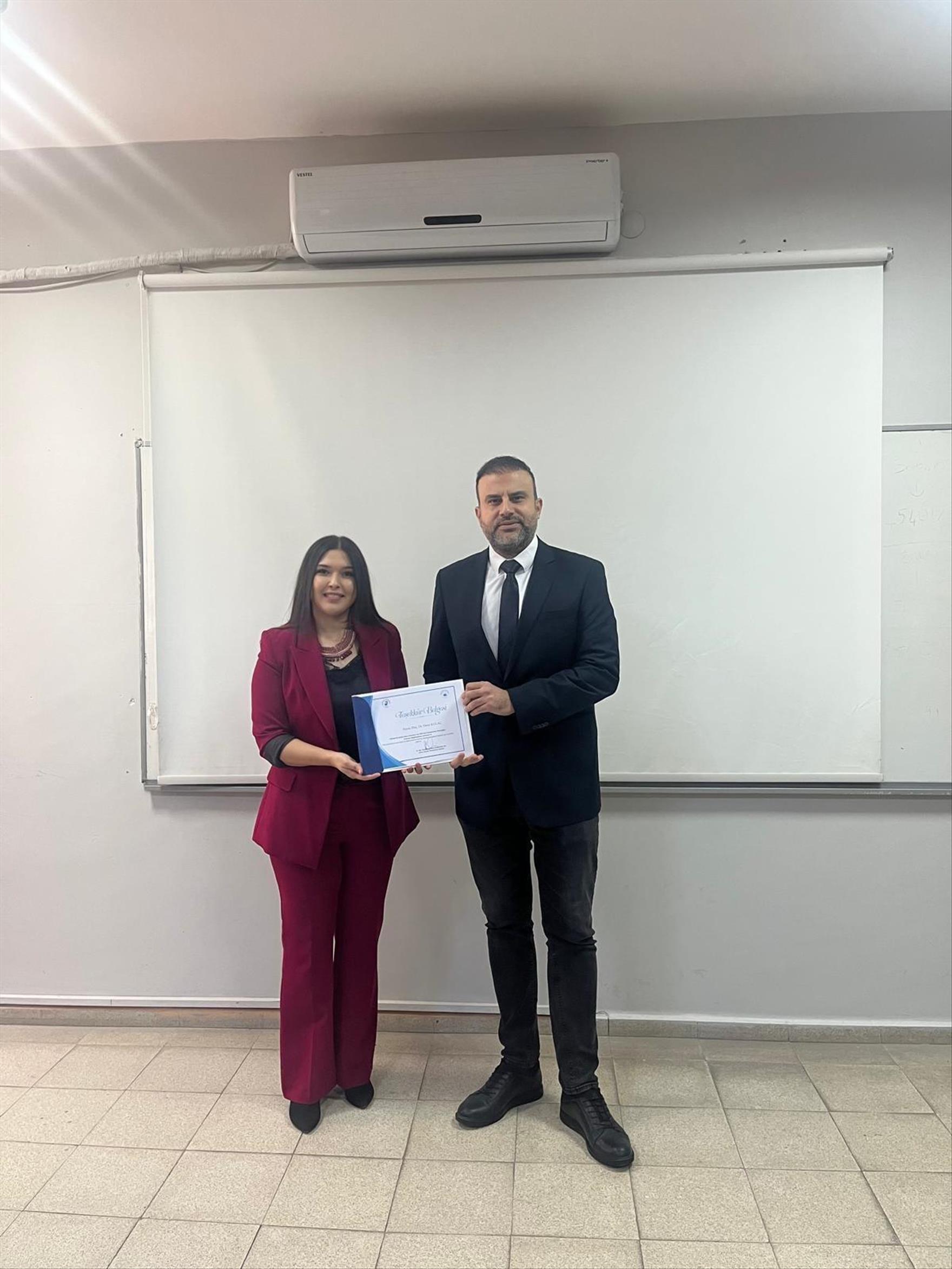 Honaz Meslek Yüksekokulu Müdürü Dr. Öğretim Üyesi Necla İrem İRİ, Honaz Meslek Yüksekokulu’nda öğrenci ve akademik, idari personel için yapılan öğrenci hareketliliği ve personel hareketliliği kapsamında Avrupa ülkelerinden ve Avrupa ülkeleri dışından toplam 50’ den fazla anlaşmanın bulunduğunu, Honaz Meslek Yüksekokulu olarak uluslararasılaşma yolculuğunun devam ettiğini, Uluslararası İlişkiler Koordinatörlüğü’nün düzenlediği seminerin öğrencilerimiz ve personelimiz için çok yararlı olduğunu belirterek konuk katılımcılara teşekkür belgelerini takdim etti.