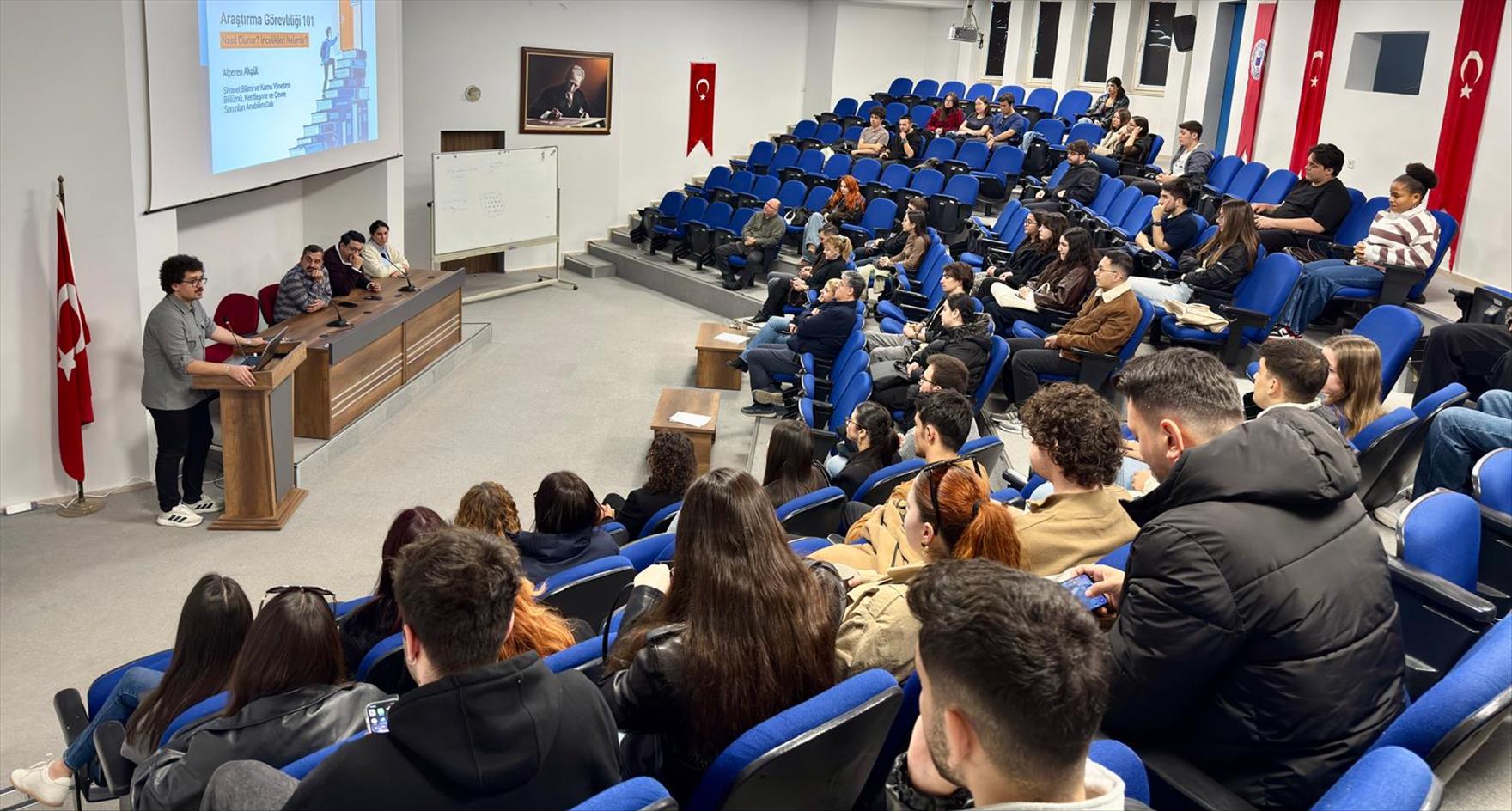 Oturumun soru-cevap bölümünde öğrenciler, merak ettikleri konuları akademisyenlere doğrudan yönelterek etkileşimli bir tartışma ortamı oluşturdu.