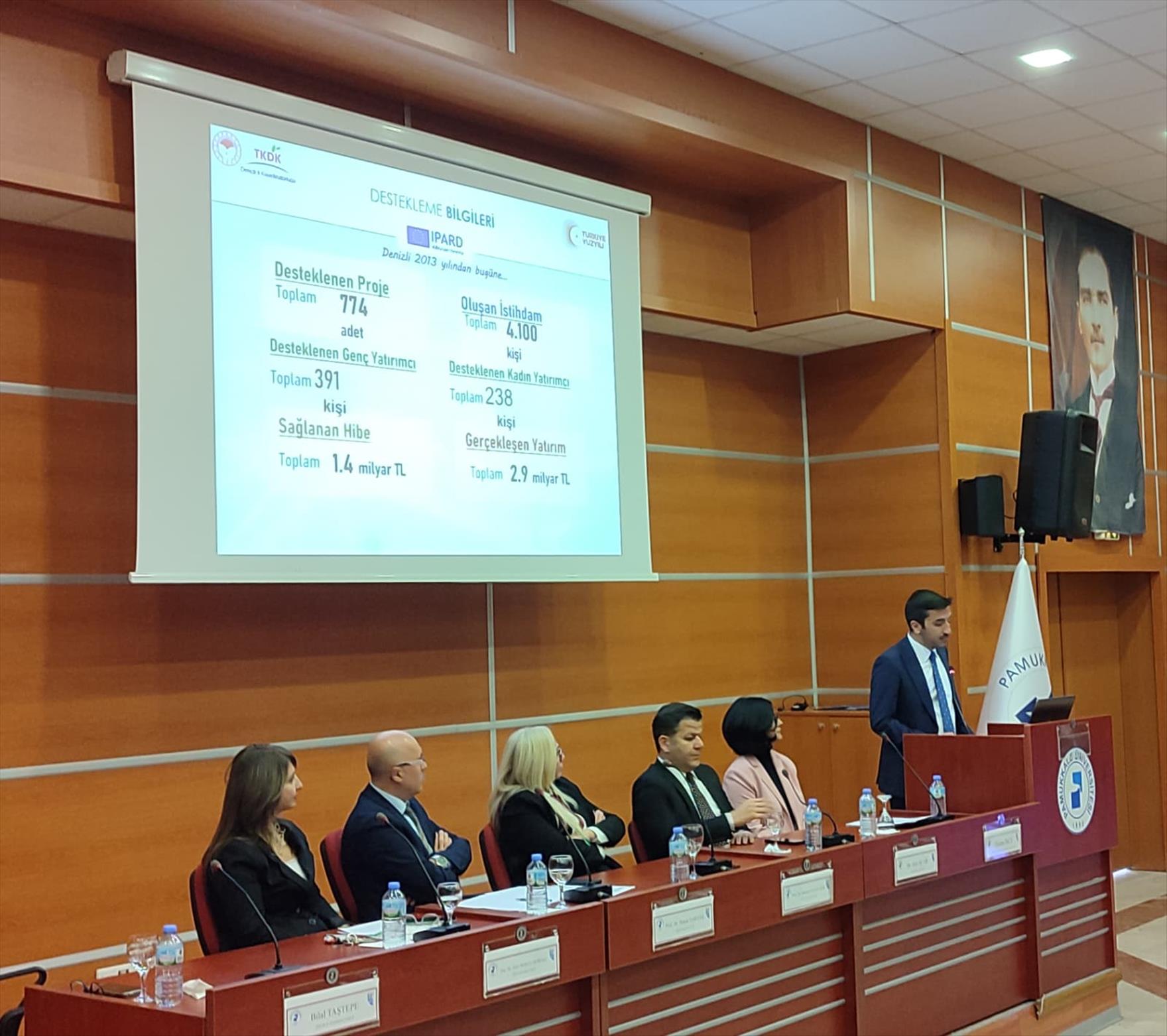 Panelin ikinci bölümünde, girişimcilere yönelik somut destek mekanizmaları aktarıldı. KOSGEB İl Müdürü Dr. Aziz Acar, KOBİGEL ve Girişimci Destek Programı gibi hibe ve kredi imkanlarını detaylandırırken; TKDK İl Koordinatörü Bilal Taştepe, IPARD programı kapsamında kırsal turizm ve tarım alanında %70’e varan hibe fırsatlarını katılımcılarla paylaştı. GEKA Denizli Yatırım Destek Ofisi Koordinatörü Özlem İnce ise ajansın proje yazımı ve teknik destek konusundaki rehberlik rolüne vurgu yaptı.