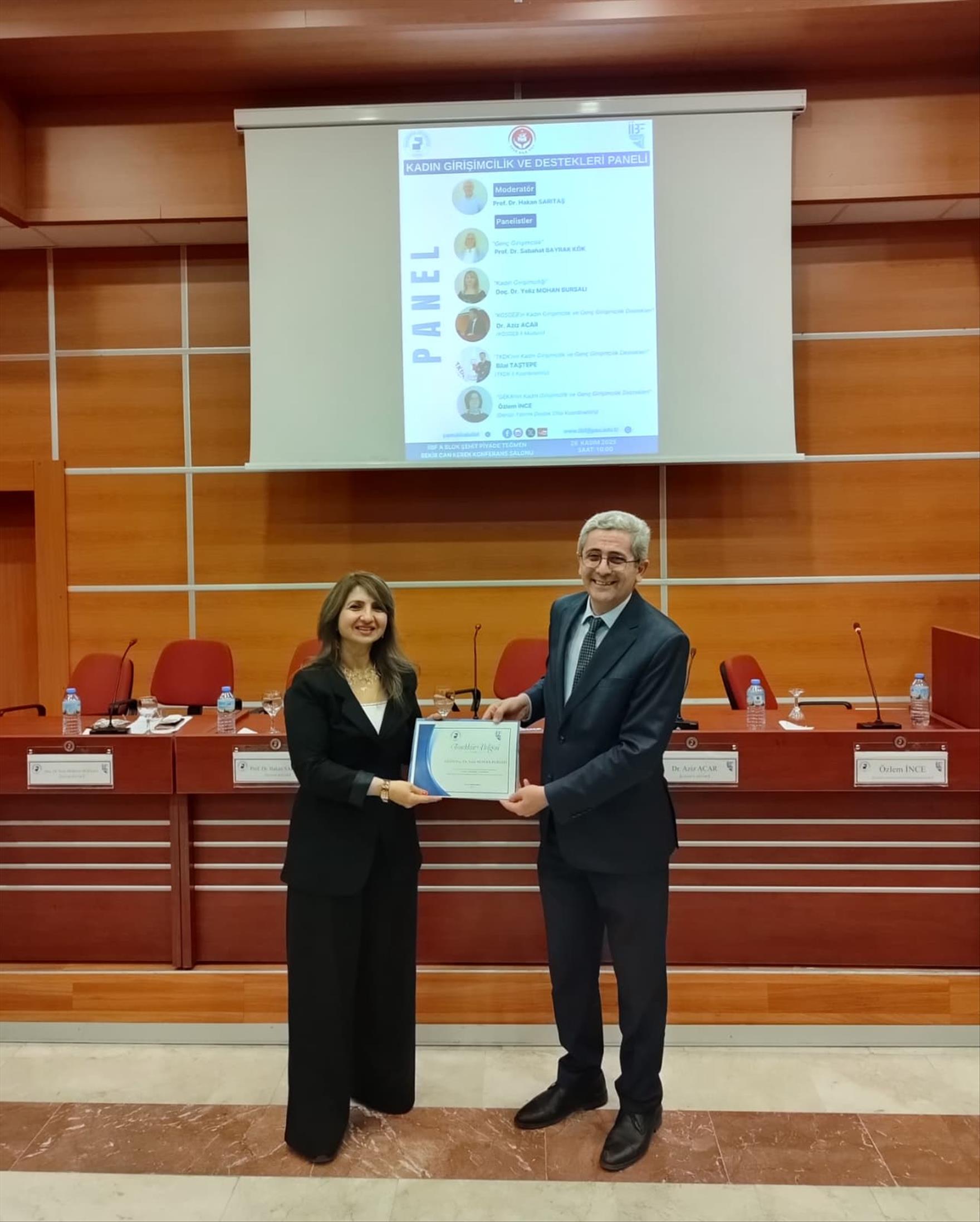 Moderatörlüğünü Prof. Dr. Hakan Sarıtaş'ın üstlendiği "Kadın Girişimcilik ve Destekleri Paneli", akademisyenlerin ve öğrencilerin yoğun katılımıyla gerçekleştirildi. Etkinlikte, girişimcilik ekosisteminin dinamikleri ve kamu kurumlarının sağladığı güncel fırsatlar analiz edildi.