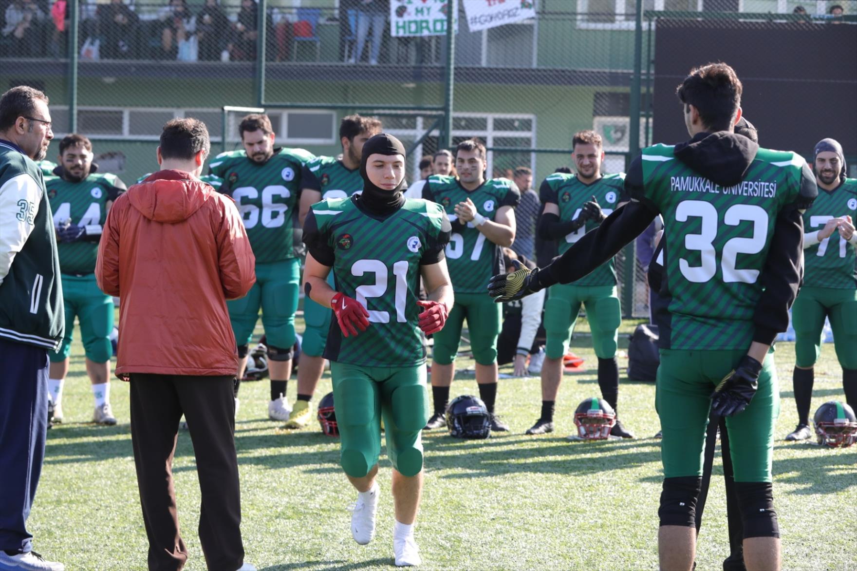 Türkiye Üniversite Sporları Federasyonu Korumalı Futbol 1.Lig C grubu ikinci maçında Pamukkale Üniversitesi Korumalı Futbol Takımı (Pamukkale Horozları) Tekirdağ Namık Kemal Üniversitesi’ni yenerek maçtan galip ayrıldı.
