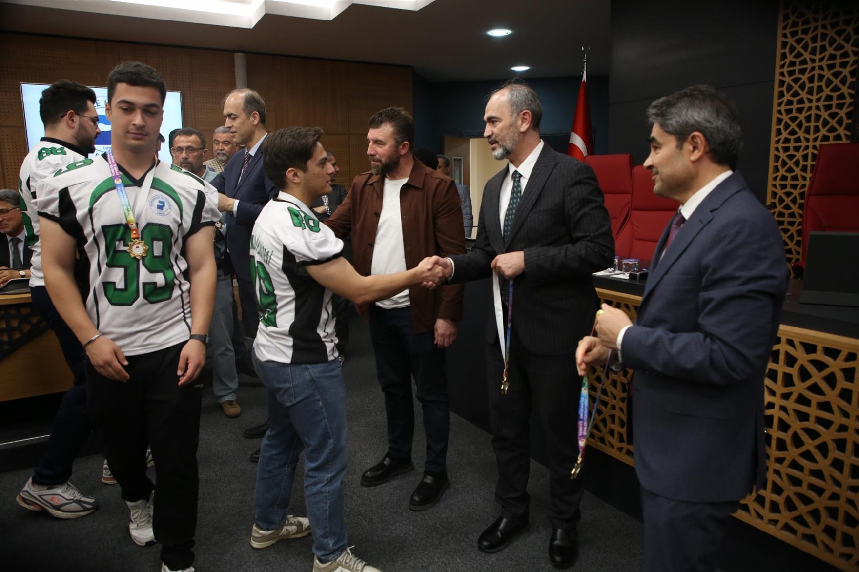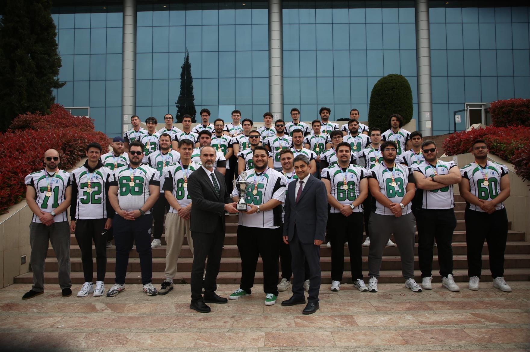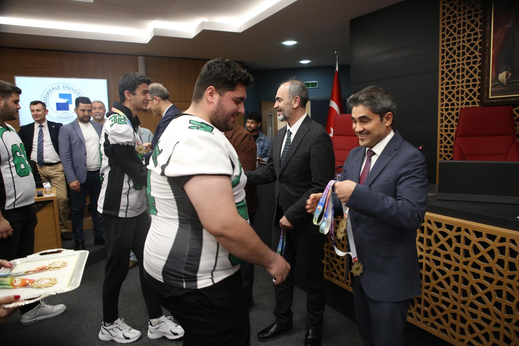 Türkiye Üniversite Sporları Federasyonu Korumalı Futbol 1.Lig şampiyonu olarak Süper Lige çıkan Pamukkale Üniversitesi Korumalı Futbol Takımı’na (Pamukkale Horozları) şampiyonluk kupası ve madalyaları Federasyon Başkanı Prof. Dr. Mutlu Türkmen tarafından takdim edildi.