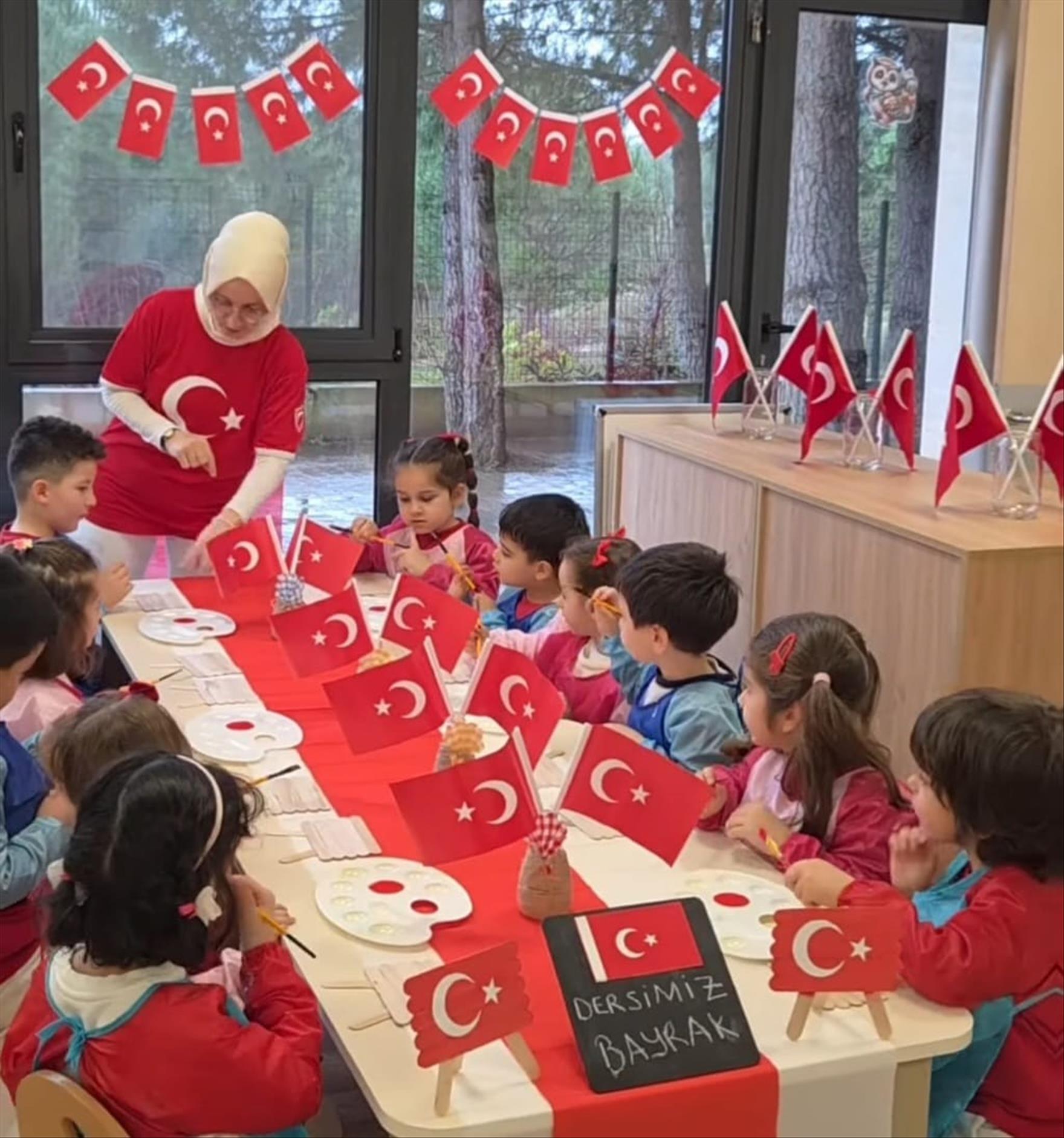 Etkinlik kapsamında gerçekleştirilen programda; minik yürekler, hep bir ağızdan İstiklal Marşımızı büyük bir gururla seslendirdi. Bayrak temalı şarkılar eşliğinde dans eden çocuklar, milli değerlerimizi eğlenerek öğrenmenin mutluluğunu yaşadı. Öğretmenler eşliğinde yapılan sohbetlerde, bayrağımızın tarihi ve manevi değeri çocukların anlayabileceği sade ve sıcak bir dille anlatıldı.