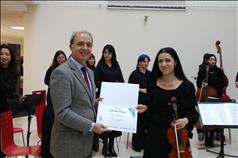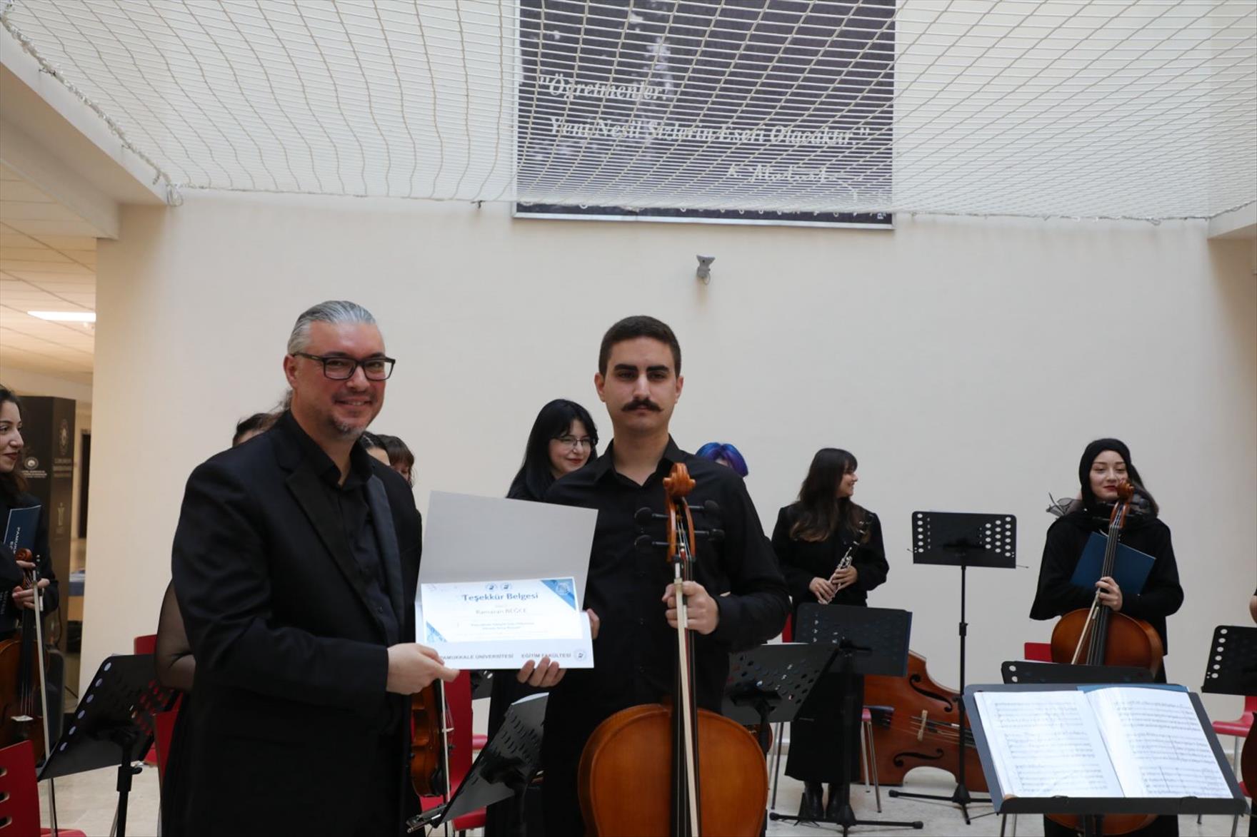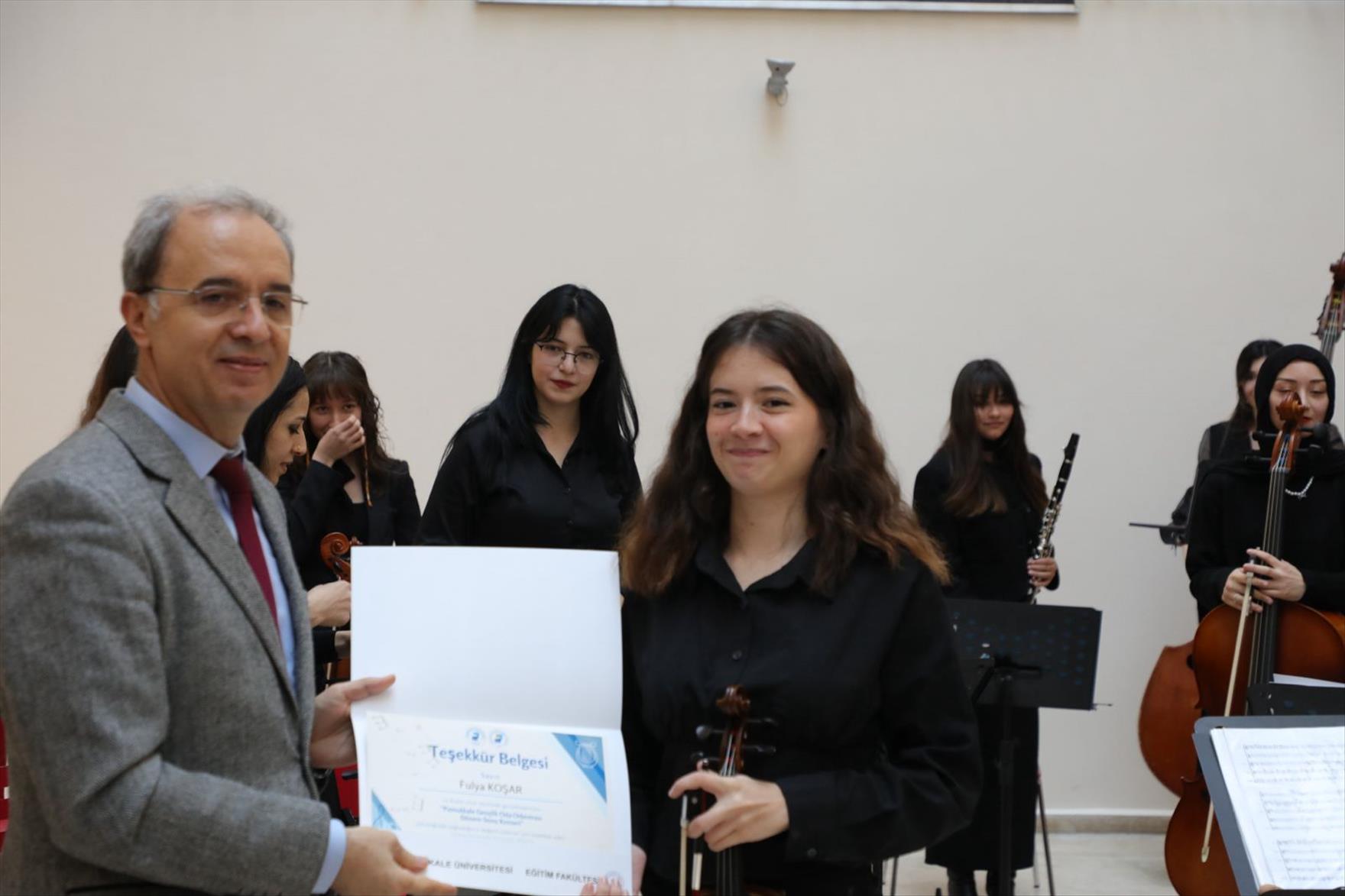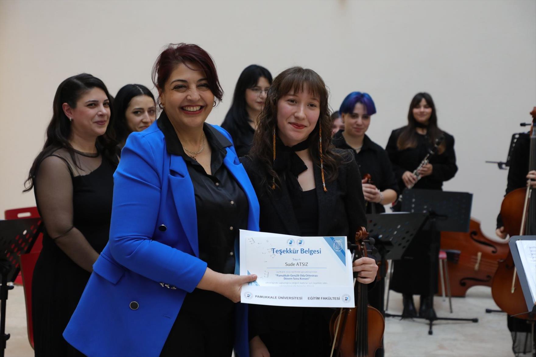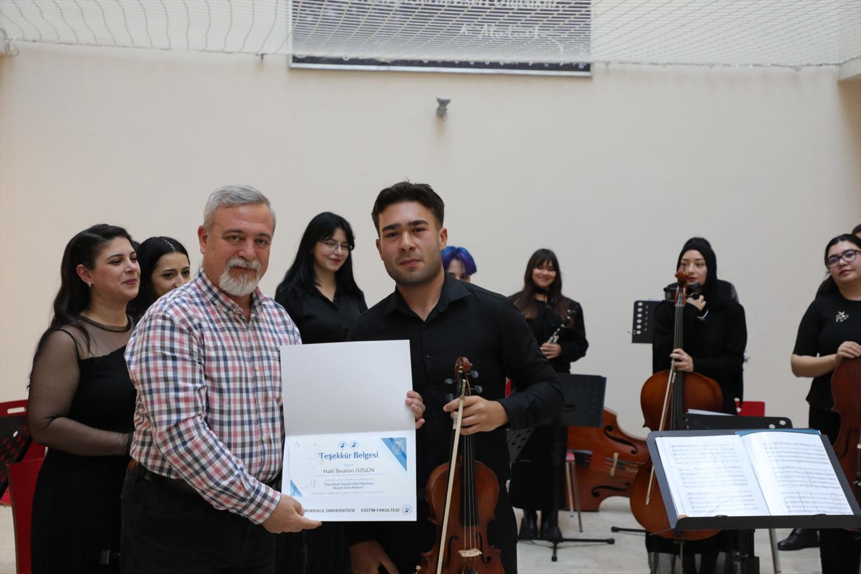 Şef Dr. Öğr. Üyesi Çağatay Şişman yönetimindeki orkestra, sergilediği profesyonel tını ve derinlikli yorumuyla Pamukkale Üniversitesi’nin sanatsal vizyonunu bir kez daha ortaya koydu. Konser sonunda uzun süre alkışlanan Gençlik Oda Orkestrasına Teşekkür Belgelerini Eğitim Fakültesi Dekanı Prof. Dr. İzzet Kara, Güzel Sanatlar Eğitimi Bölüm Başkanı Prof. Dr. Feryal Baykal ve Müzik Eğitimi Ana Bilim Dalı Başkanı Prof. Dr. Ufuk Yağcı takdim etti.