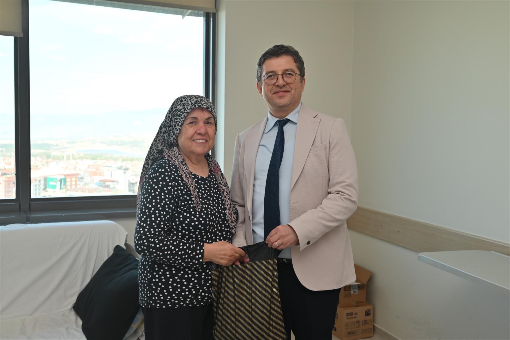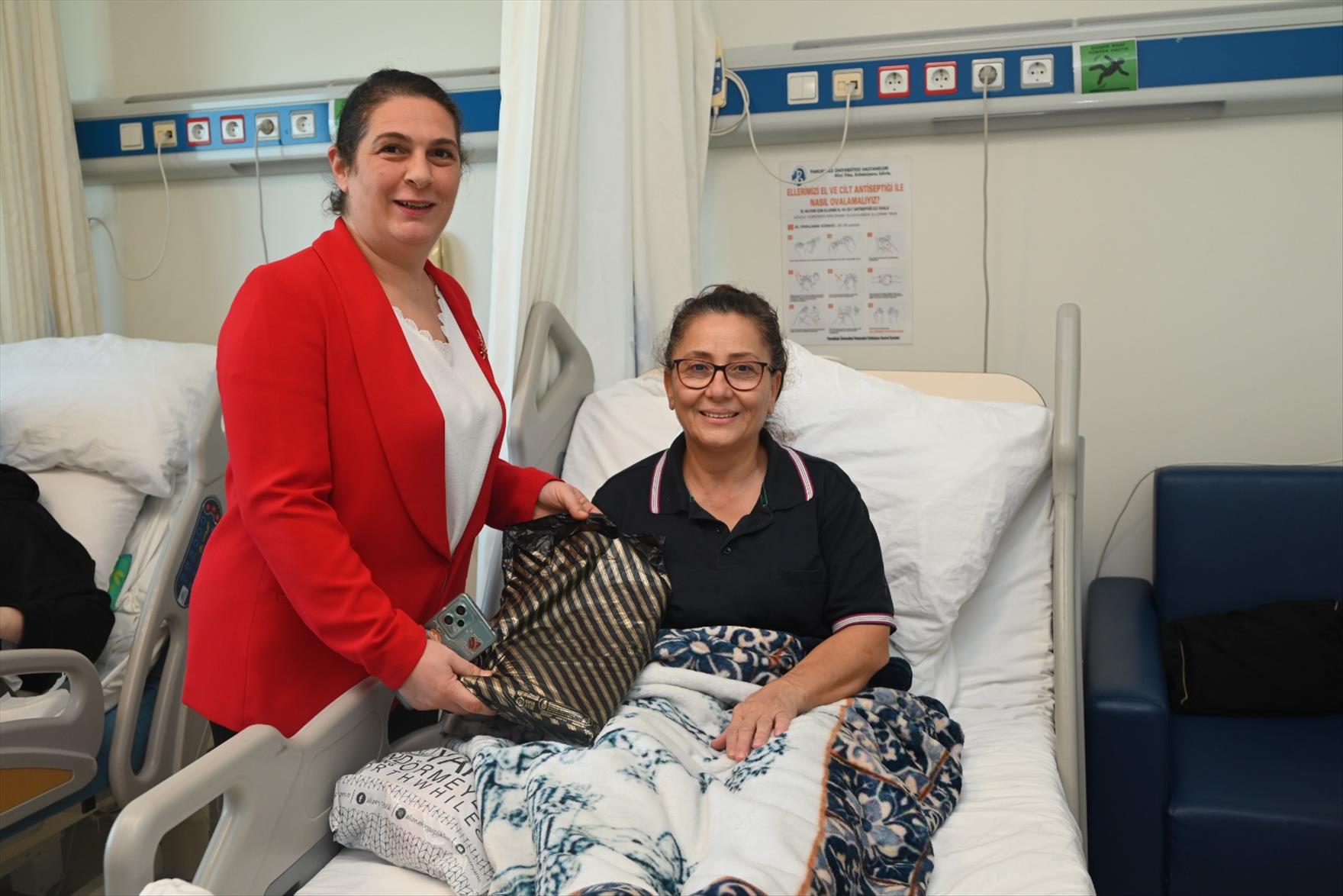 Pamukkale Üniversitesi (PAÜ) Hastanelerinde Hasta Hakları Günü’nde düzenlenen etkinlik kapsamında hastane yönetimi, yataklı servislerdeki hastaları ziyaret etti.