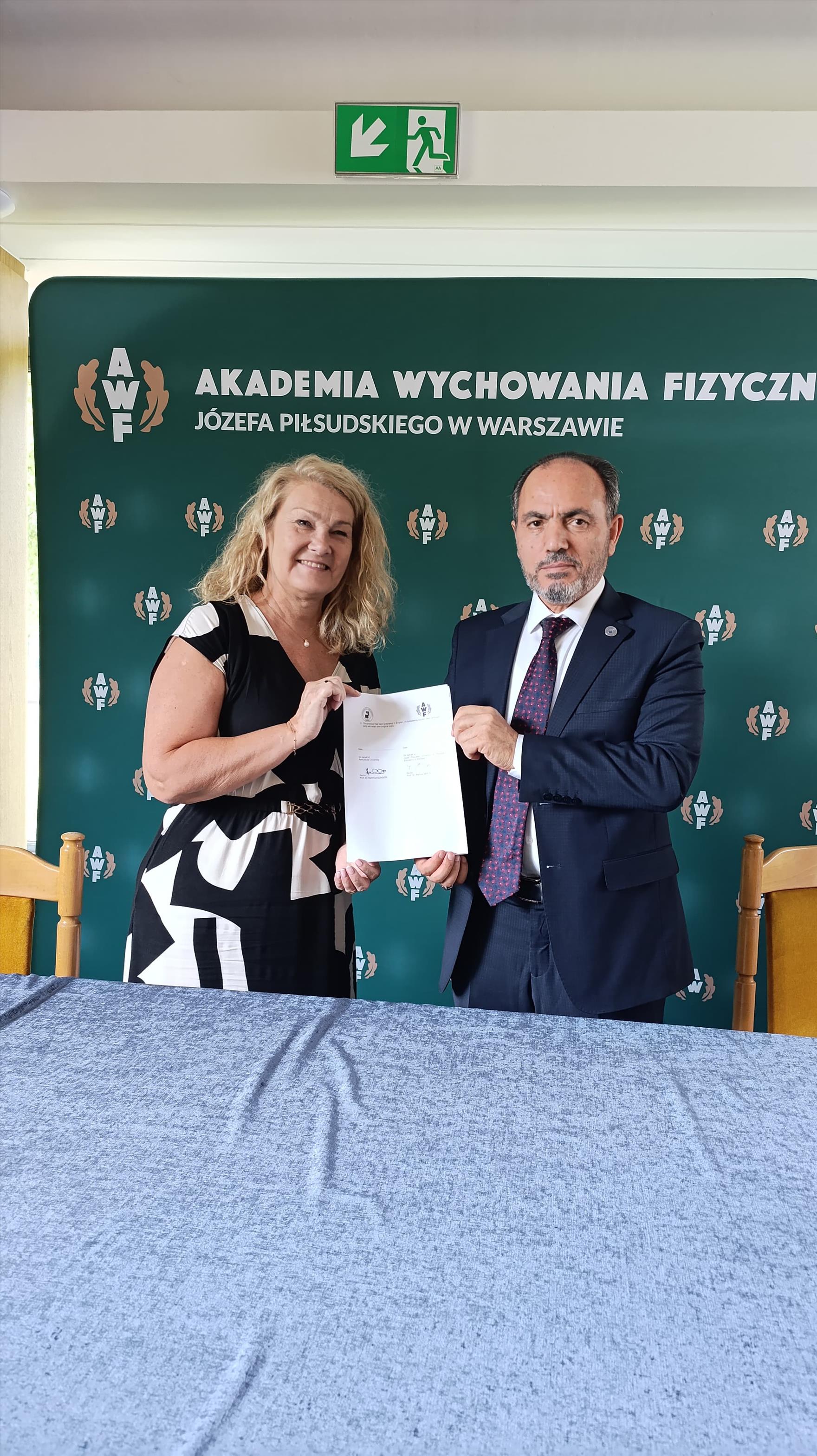 Polonya’nın başkenti Varşova’da bulunan Akademia Wychowania Fizycznego (AWF) Fizik ve Spor Bilimleri Üniversitesi ile yapılan görüşmede, iki üniversite arasındaki mevcut Erasmus anlaşmaları gözden geçirilerek, ilişkilerin daha da derinleştirilmesi kararlaştırıldı. Bu kapsamda, iki üniversite arasında Akademik İş Birliği Protokolü (MoU: Memorandum of Understanding) imzalandı. Bu çerçevede, iki üniversite arasında ortak; konferans, çalıştay, proje, staj ve akademisyenlerin doktora sonrası araştırma yapmasına imkân tanınacak.