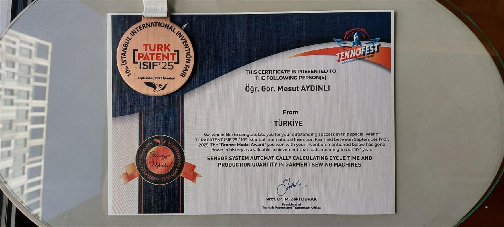 Another bronze medal at ISIF’25 for Pamukkale University went to the invention titled “Sensor System Automatically Calculating Cycle Time and Production Count in Garment Sewing Machines,” developed by PAU Quality Management and Data Evaluation Application and Research Center staff member Res. Asst. Mesut Aydınlı.