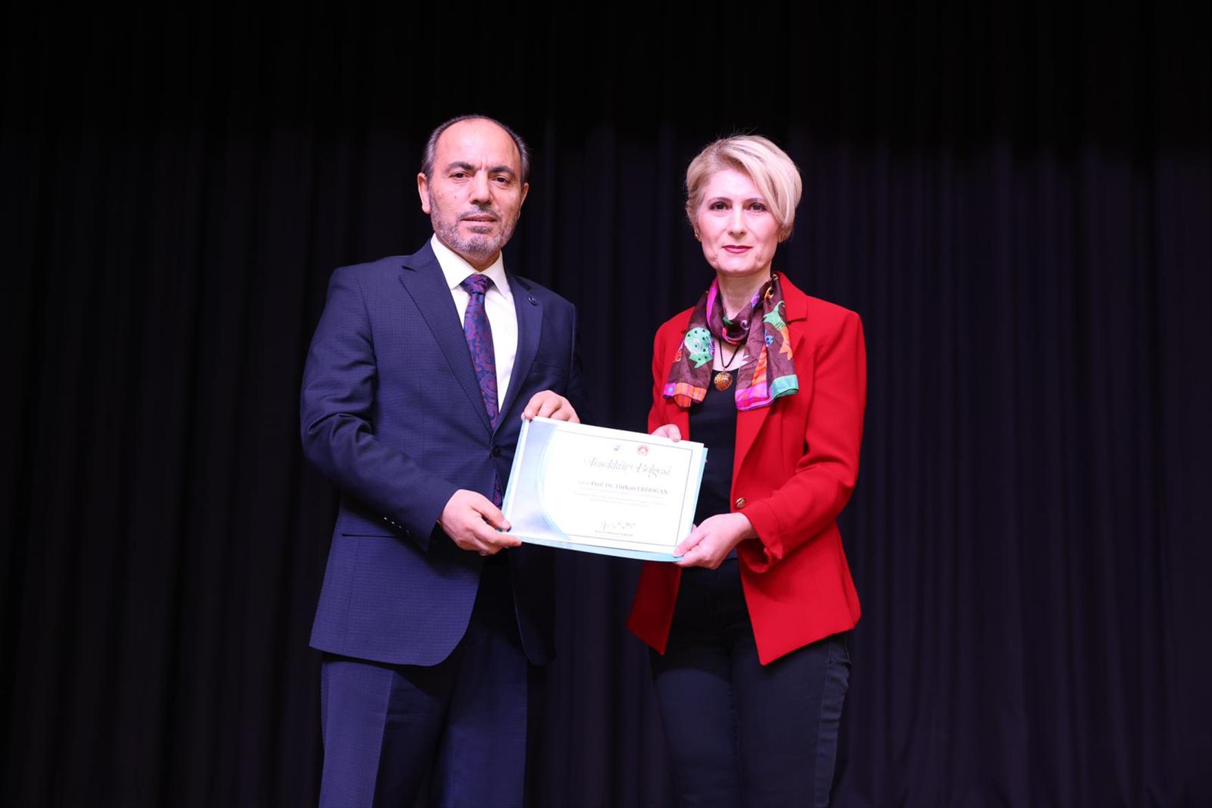 PAÜ Aile Yılı Etkinlikleri için desteklerini esirgemeyen İl Aile ve Sosyal Hizmetler Müdürü Ekrem Boran’a, İl Milli Eğitim Müdürü Dr. Emre Çalışkan’a, İl Gençlik ve Spor Müdürü Süleyman Erdoğan’a, İl Müftüsü Abdullah Pamuklu’ya ve konferansın konuğu Hayati İnanç’a teşekkür şiltlerini Denizli Valisi Ömer Faruk Coşkun ile Rektör Prof. Dr. Mahmud Güngör birlikte takdim etti.