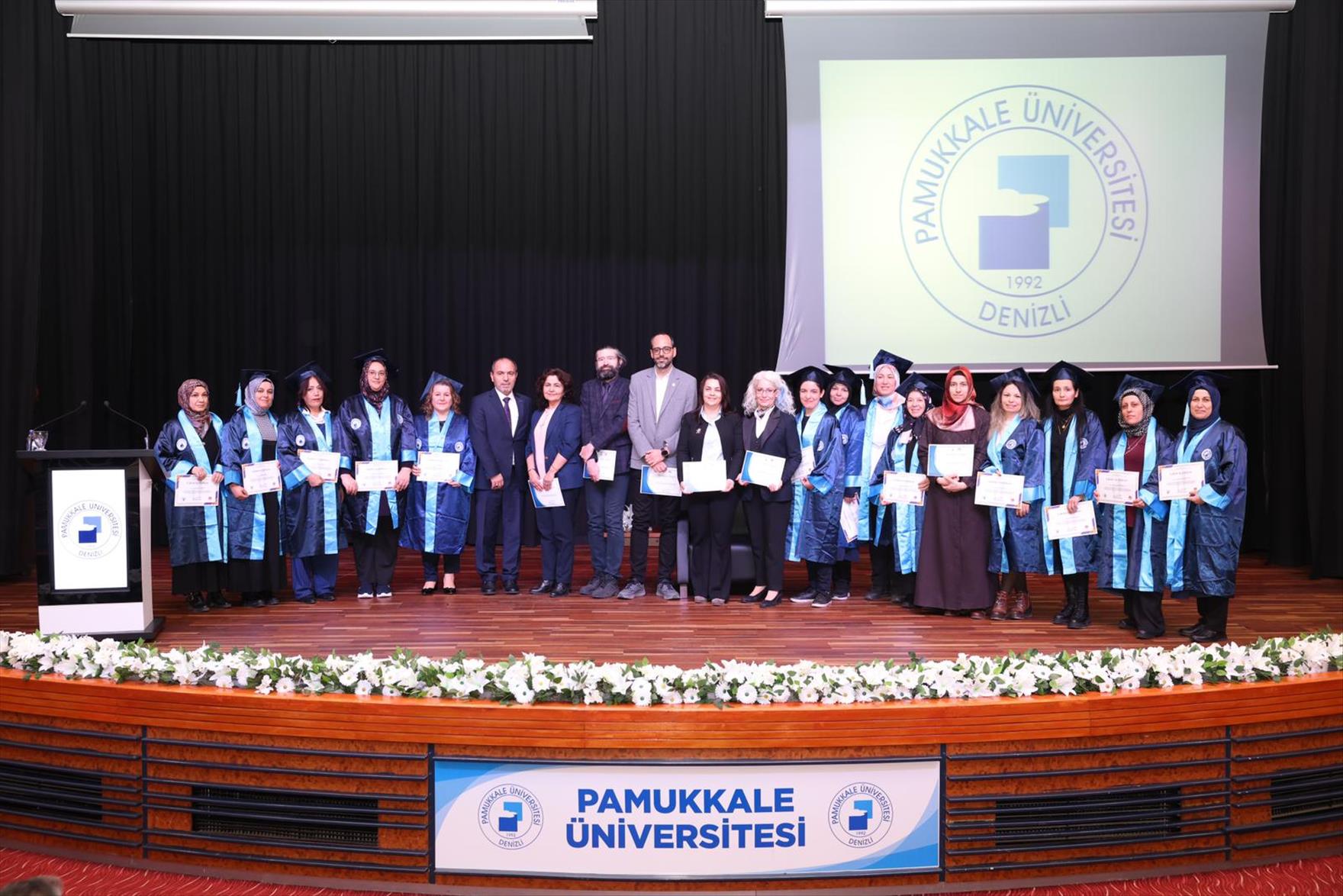 Törende ayıca PAÜ Topluma Hizmet ve Sosyal Sorumluluk Uygulama ve Araştırma Merkezi (TOHSAM) aile yılı etkinlikleri kapsamında, 35 yaş üstü olup iki ve daha fazla çocuğa sahip annelere yönelik, “anneler öğreniyor gelecek güçleniyor” başlıklı dört haftalık sertifikalı bir eğitim programı kapsamında eğitim veren akademisyenler ile programa katılan annelere ve sertifika verilerek sembolik olarak cüppe takdiminde bulunuldu.