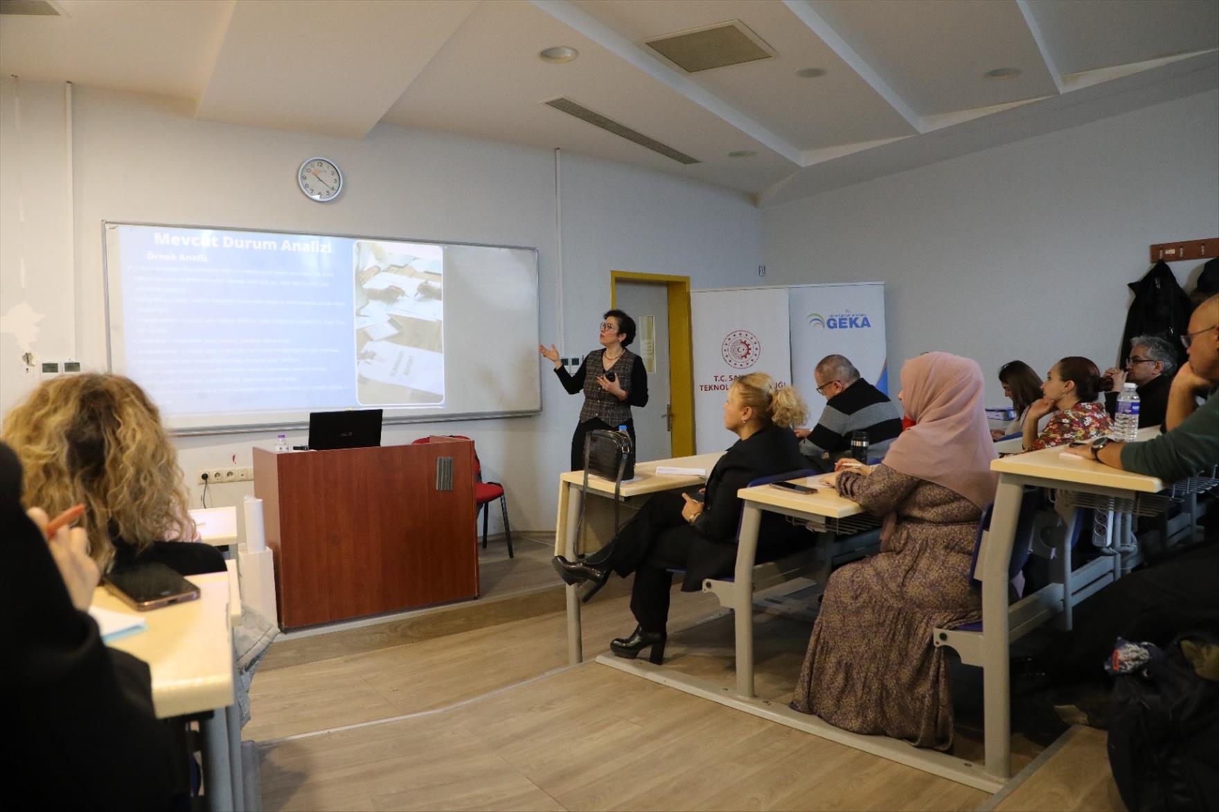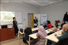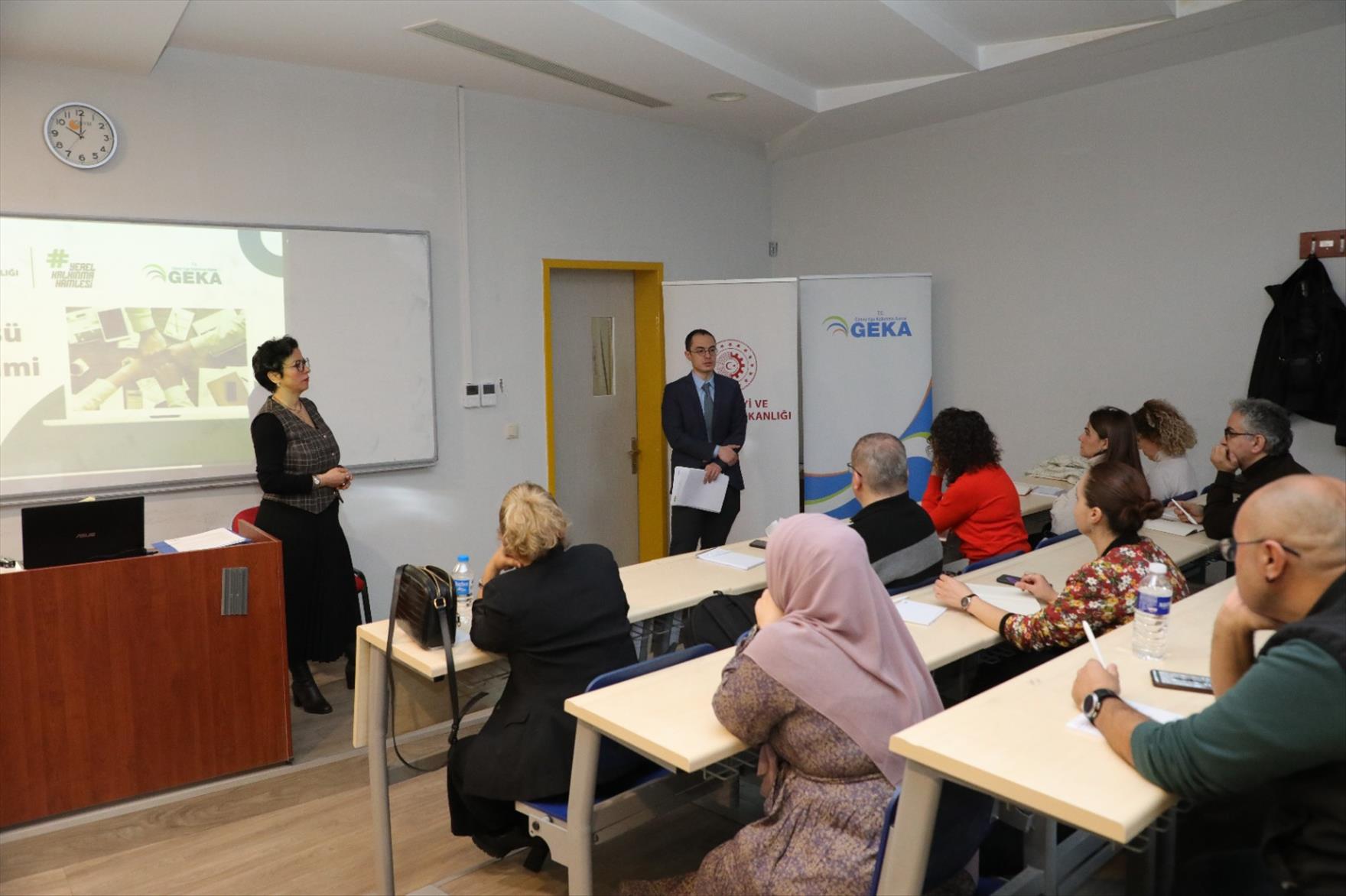 Güney Ege Kalkınma Ajansı (GEKA) Proje Uzmanı Songül Başar yaptığı konuşmada şunları ifade etti: “Sıkça projelerde karşılaştığımız kelimeler, işte genel amaçları, proje amacıdır, mantıksal çerçeve matriksi, hedef, paydaş hani bu kelimeleri hep böyle duymuşsunuzdur ama neler olduğunu tam net bir şekilde eğitimimizde uygulamalı bir şekilde bunlara odaklanacağız. Ben sizlere genel olarak proje döngüsünü başlangıçta fikir aşamasından sonuna kadar uygulamayla dahil bir şekilde ve de Güney Kalkınma Ajansı da projelerde uygulama aktarımı yapabileceğim bütçelerinden bahsedeceğim. Sizin sorularınızla da bu eğitim daha şekillenecek. TÜBİTAK ya da diğer programlarla ilgili daha detaylı başvuru koşullarını Proje Destek Ofisi yetkilileri tarafından sizlere aktaracak. Bugün benim vereceğim eğitim kapsamında projenin başvuru koşulları bölümüyle değil daha çok proje kısmına odaklanacağız.”
