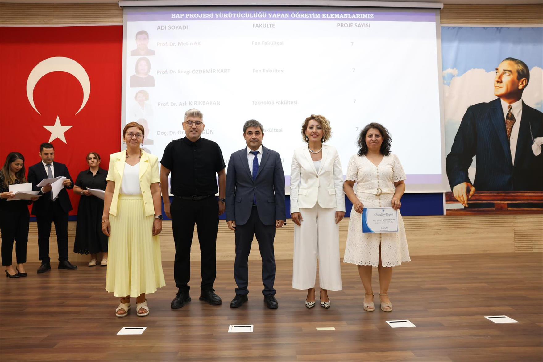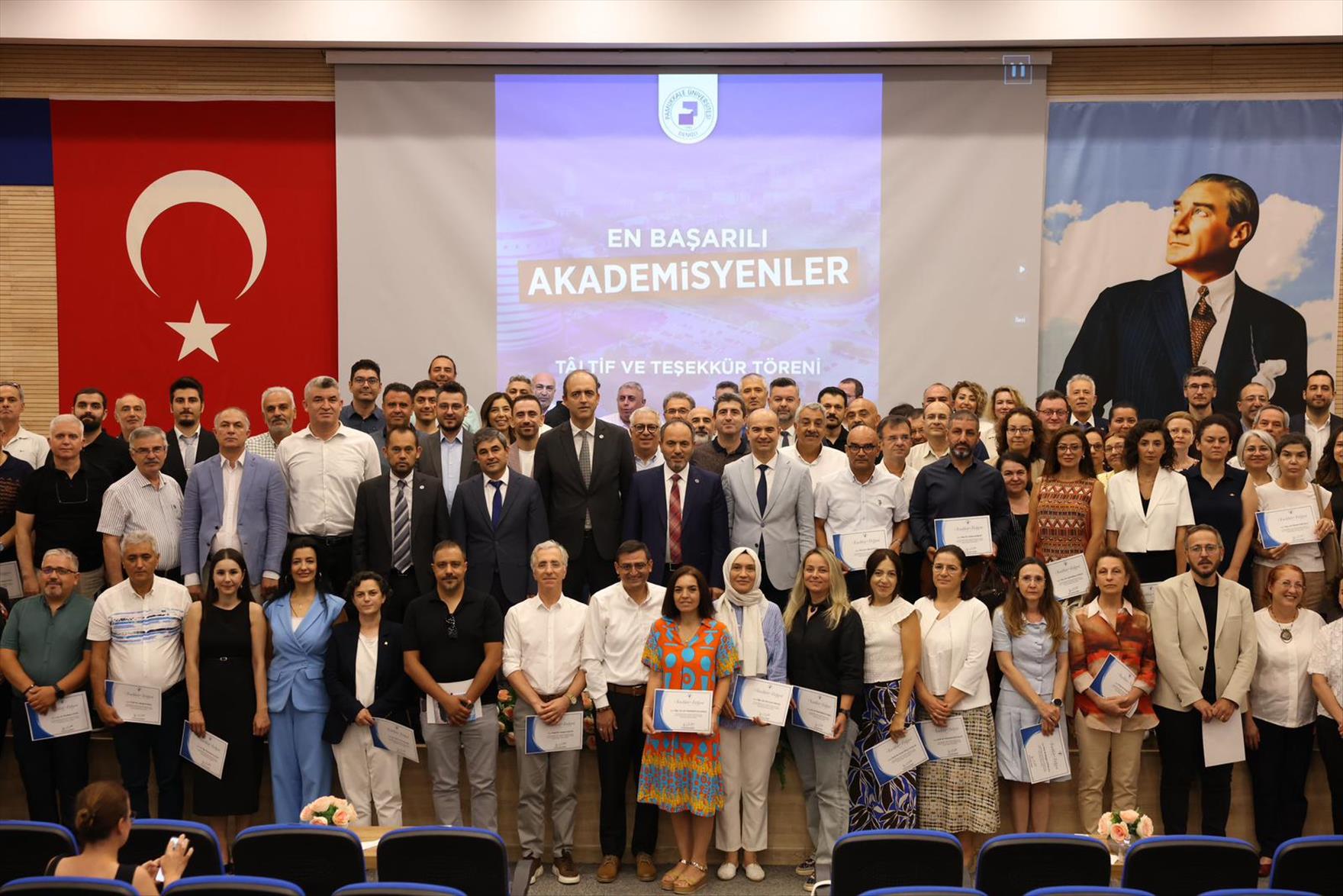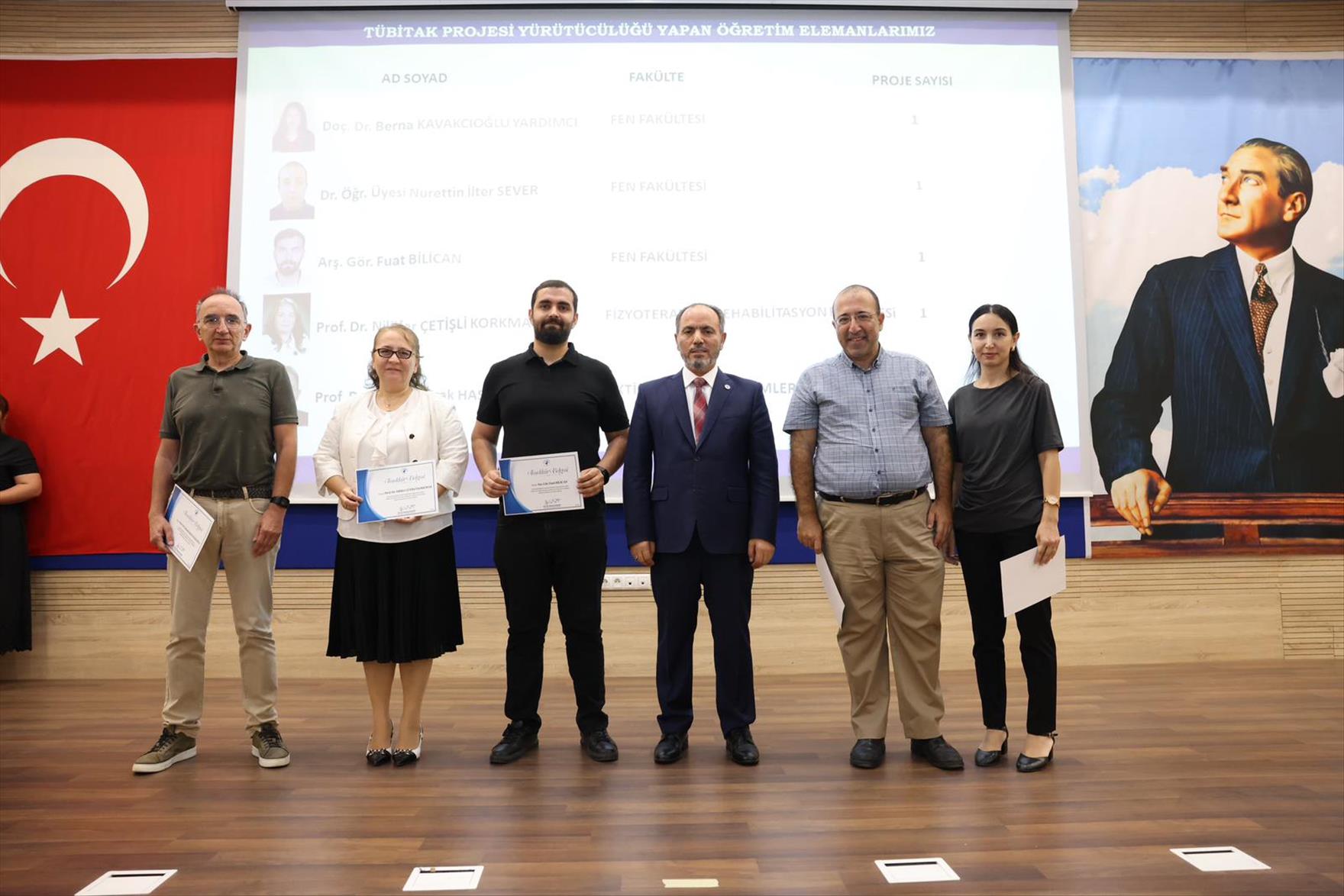At the end of the program, certificates of appreciation were presented by Rector Prof. Dr. Mahmud Güngör and Vice Rectors Prof. Dr. Ersan Öz, Prof. Dr. İbrahim Türkçüer, and Prof. Dr. Mehmet İnel to faculty members who served as coordinators of TÜBİTAK projects, to those with an H-index of 5 or higher over the past five years, and to those conducting BAP projects.