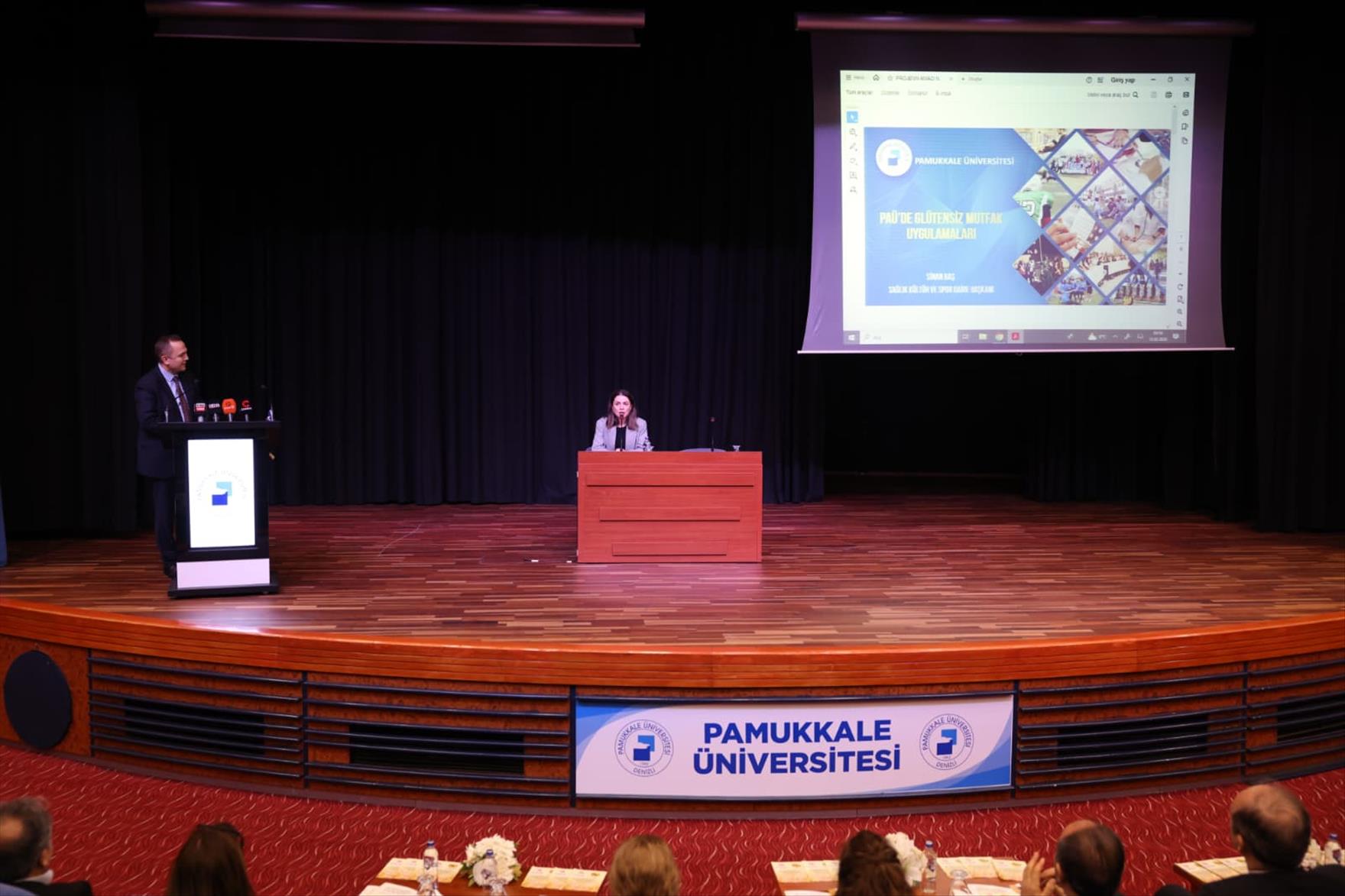 Açılış konuşmalarının ardından PAÜ SKS Daire başkanı Sinan Baş, PAÜ’de Glütensiz Yemek Uygulamaları adlı sunumunu gerçekleştirdi. Sunumun ardından Rektör Prof. Dr. Mahmud Güngör SKS Daire Başkanı Sinan Baş2a teşekkür belgesi takdim etti. Sunumun ardından program müzik dinletisi ile devam etti.