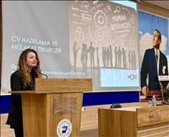 PAÜ İİBF Sektör Günleri etkinlikleri çerçevesinde İnsan Kaynakları Danışmanı Özge Solakoğlu, “CV Hazırlama ve Mülakat Teknikleri” konferansıyla öğrencilerle bir araya geldi. Kariyer Planlama dersi kapsamında Eğitim Fakültesi Melek Sözkesen Konferans Salonu'nda düzenlenen etkinlik yoğun öğrenci katılımıyla gerçekleşti.