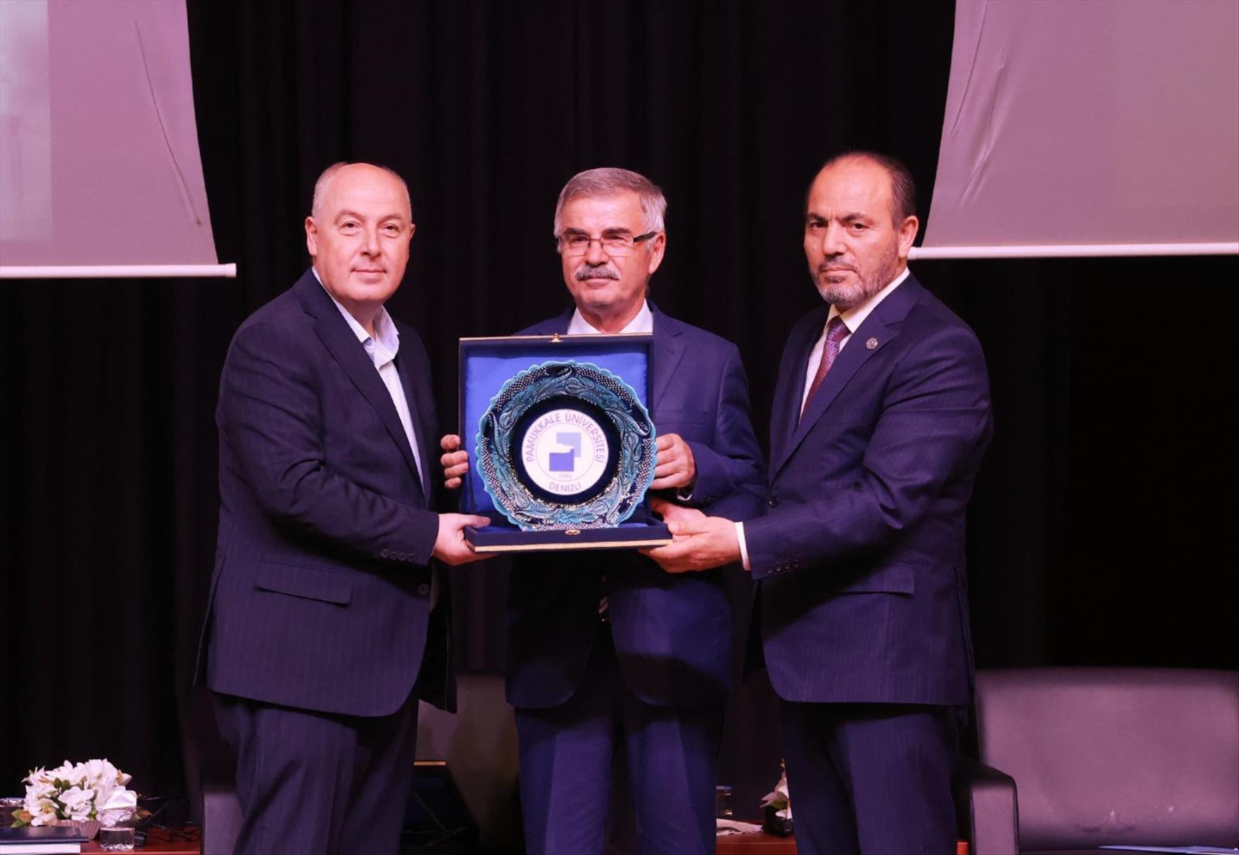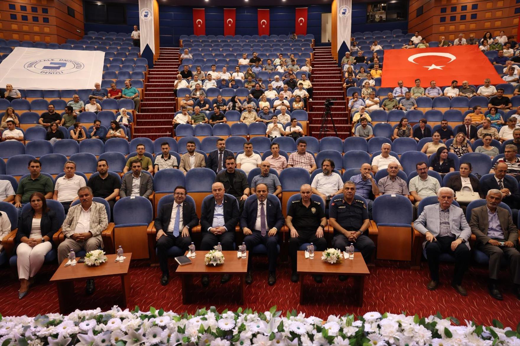The July 15 Democracy and National Unity Day “The Name of Victory is Türkiye” Panel concluded with Denizli Governor Ömer Faruk Coşkun and Rector Prof. Dr. Mahmud Güngör presenting certificates of appreciation to Educator-Writer Halit Ortaköy, Prof. Dr. Mehmet Ali Ünal, and Prof. Dr. Mehmet Özkan for their contributions.