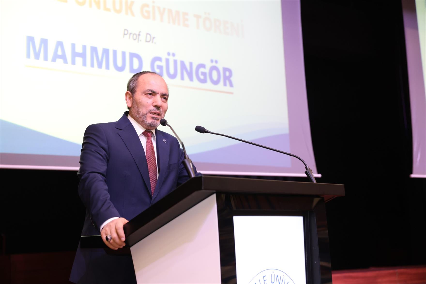 Pamukkale Üniversitesi Rektörü Prof. Dr. Mahmud Güngör yaptığı konuşmada şunları kaydetti: “Bu beyaz önlük giyme törenimize hoş geldiniz, sefalar getirdiniz. Yıllarca hayalini kurduğunuz o an geldi. Bugün üzerine dökülen her ter damlasının ve her dirsek çürütülen sayfanın karşılığını bu beyaz önlükle bu sevgili genç öğrencilerimiz alacaklar. Hekimlik sadece bir meslek elbette değil, bir yaşam biçimidir. Bir anlayış biçimidir. Bir iletişim biçimidir. Bilginizi mutlaka ama mutlaka merhametle, teknolojiyle, vicdanınızla harmanlayarak hastalarınıza yaklaşmanız gerekiyor. Bugün bu salonu birer öğrenci olarak doldurdunuz. Ancak bu önlükleri giydiğiniz an, insanlığın hizmetindeki o büyük zincirin birer halkası olacaksınız. Tıp eğitiminin uzun, zorlu ve sabır isteyen bir yolculuk olduğunu hocalarımız da anlattılar. Bu yolculukta etik değerler oldukça ama oldukça önemli. Vicdan önemli, empati önemli, insan sevgisi önemli ve mutlaka öğrenilmesi gereken değerlerdir çünkü hekimlik, insanı bütün yönleriyle anlamaya çalışmaktır. Benim iddiamla tedavinin yarısı hasta doktor ilişkisinin oldukça olumlu düzeyde olmasıdır. Bu önlük hastalarımız için bir güven, bizler için ise büyük birer sorumluluk demektir. Bilimin ışığından ayrılmadan, insanı odağımıza alarak yürüyeceğimiz bu yolda birbirimize destek olacağımıza inancım tamdır. Bizleri bugünlere getiren, üzerimizde emeği olan tüm ailelerimize ve bizlere bu kutsal mesleğin kapılarını açan tüm hocalarımıza şükranlarımı sunuyorum. Biz de Rektörlük olarak elimizden geleni her zaman yapacağız, hocalarımız da misafirlerimiz de bunun farkındalar. Elimizden gelen her ne varsa ilk önce tıp fakültemizin fiziki yapısına harcamaya çalışıyoruz. Kalın sağlıcakla. Teşekkür ediyorum.”
