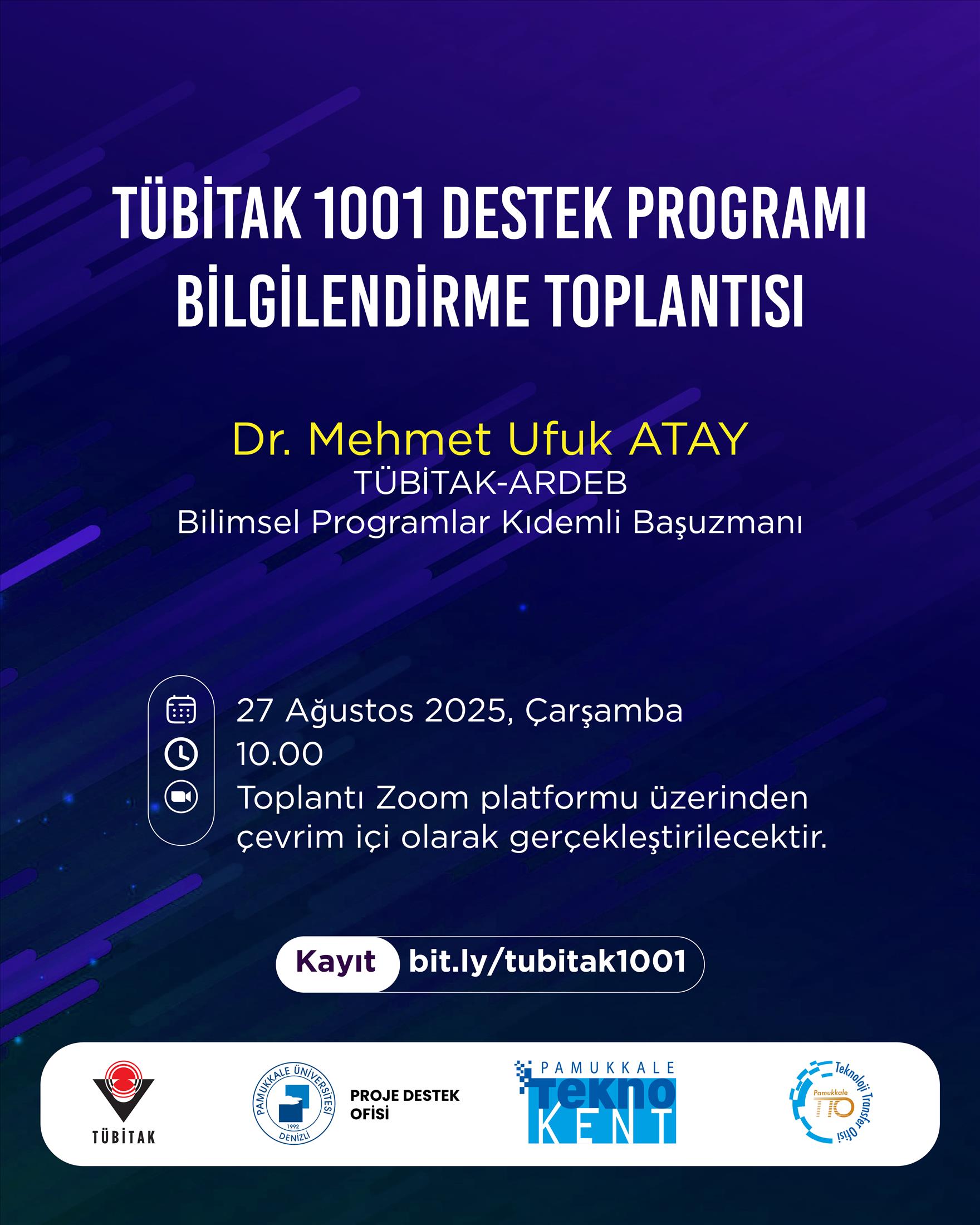 An online information meeting on the TUBITAK Research Support Programs Presidency (ARDEB) 1001 – Support Program for Scientific and Technological Research Projects was organized through the collaboration of the Pamukkale University (PAU) Project Support Office and Pamukkale Technopolis Technology Transfer Office.