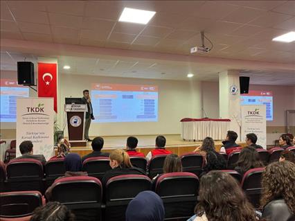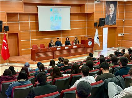 The talk titled “Design Your Career – Produce Sunscreen,” organized by the Sustainable Life Society of the Pamukkale University (PAU) Health, Culture and Sports Department, was held with high participation at the Tavas Vocational School Conference Hall.
