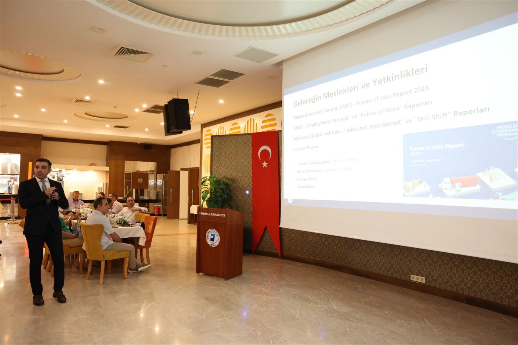 Açış konuşmalarının ardından program PAÜ İktisadi ve İdari Bilimler Fakültesi Maliye Bölüm Başkanı Doç. Dr. Fatih Akçay’ın Pamukkale Üniversitesi’nin eğitim imkânlarını ve olanaklarını anlattığı sunumu ile sürdü. Sunumda ayrıca Doç. Dr. Akçay, geleceğin meslekleri ve yetkinliklerine dair detaylı bir anlatım gerçekleştirdi. Sunumun ardından Doç. Dr. Akçay programa davetli öğretmenlerin sorularını yanıtladı.