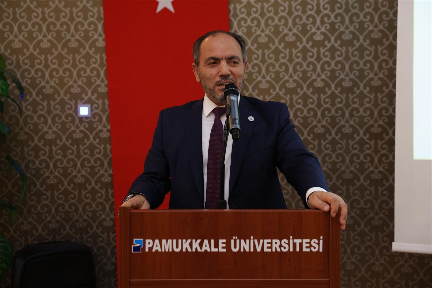 Rektör Prof. Dr. Mahmud Güngör yaptığı konuşmada şunları kaydetti: “Pamukkale Üniversitesi, yalnızca bir yükseköğretim kurumu değil; aynı zamanda Denizli’nin sosyal ve kültürel gelişimine katkı sunan, Millî Eğitim camiasıyla bütünleşmiş bir eğitim merkezidir. Bugün burada bulunmamızın temel amacı, öğrencilerimizin potansiyellerini en verimli şekilde değerlendirecekleri alanlara yönlendirilmelerine birlikte katkı sunmaktır. Üniversitemiz bugün itibarıyla 19 aktif fakülte, 6 enstitü, 1 yüksekokul (Yabancı Diller Yüksekokulu) ve 17 meslek yüksekokuluyla faaliyet göstermektedir. Pamukkale Üniversitesi resmi olarak 1992 yılında kurulmuş olsa da, temelleri 1976 yılına, o dönemde açılan Mühendislik Fakültesi'nin Makine ve İnşaat Mühendisliği bölümlerine kadar uzanmaktadır. Bu köklü geçmişin üzerine inşa ettiğimiz vizyonumuzda, sadece akademik başarıya değil; aynı zamanda şehre, bölgeye ve ülkeye katkı sağlayacak bir yapının inşasına odaklanıyoruz. Eğitimin her kademesinde iş birliğine açık bir üniversite olarak Millî Eğitim Müdürlüğümüzle yürüttüğümüz çalışmalar, bu anlayışın önemli bir parçasıdır. Gençlerimizin tercih döneminde en doğru kararı verebilmeleri, ancak sizlerin rehberliğiyle mümkündür. Öğrencilerimizi sadece puanlarına göre değil, ilgilerine ve yeteneklerine göre yönlendirdiğimizde başarı kaçınılmaz olacaktır. Pamukkale Üniversitesi olarak bizler de bu bilinçle çalışıyor, öğrenci odaklı bir yaklaşımı önceliyoruz. Üniversitemiz aynı zamanda uluslararasılaşma konusunda da önemli adımlar atmaktadır. Son yıllarda uluslararası öğrenci sayımızı 3 binlere yaklaştırdık. Polonya, Afrika ve ABD gibi farklı coğrafyalardaki üniversitelerle protokoller imzalayarak öğrenci değişimi ve çift diploma programları başlattık. Örneğin ABD’deki bir eyalet üniversitesiyle yürüttüğümüz iş birliği sayesinde öğrencilerimiz 2 yıl Türkiye’de, 2 yıl ABD’de okuyarak çift diploma sahibi olabiliyor ve yurtdışı staj olanaklarına da kavuşuyor. Bunların yanında dijitalleşme ve küresel eğitim ağına entegrasyon alanlarında da ciddi mesafe kat ettik. Üniversitemizi geleceğin eğitim anlayışına hazırlarken, gençlerimizi de dünya ile entegre bireyler olarak yetiştirmeyi hedefliyoruz. Siz değerli öğretmenlerimizin katkısıyla; Pamukkale Üniversitesi sadece Denizli’nin değil, Türkiye’nin en saygın üniversiteleri arasında hak ettiği yeri alacaktır. Bu süreçte kazanan öğrencilerimiz olacak, kazanan siz olacaksınız, kazanan ülkemiz olacak. Katkılarınız, yönlendirmeleriniz ve bu anlamlı buluşmadaki varlığınız için her birinize teşekkür ediyorum.”
